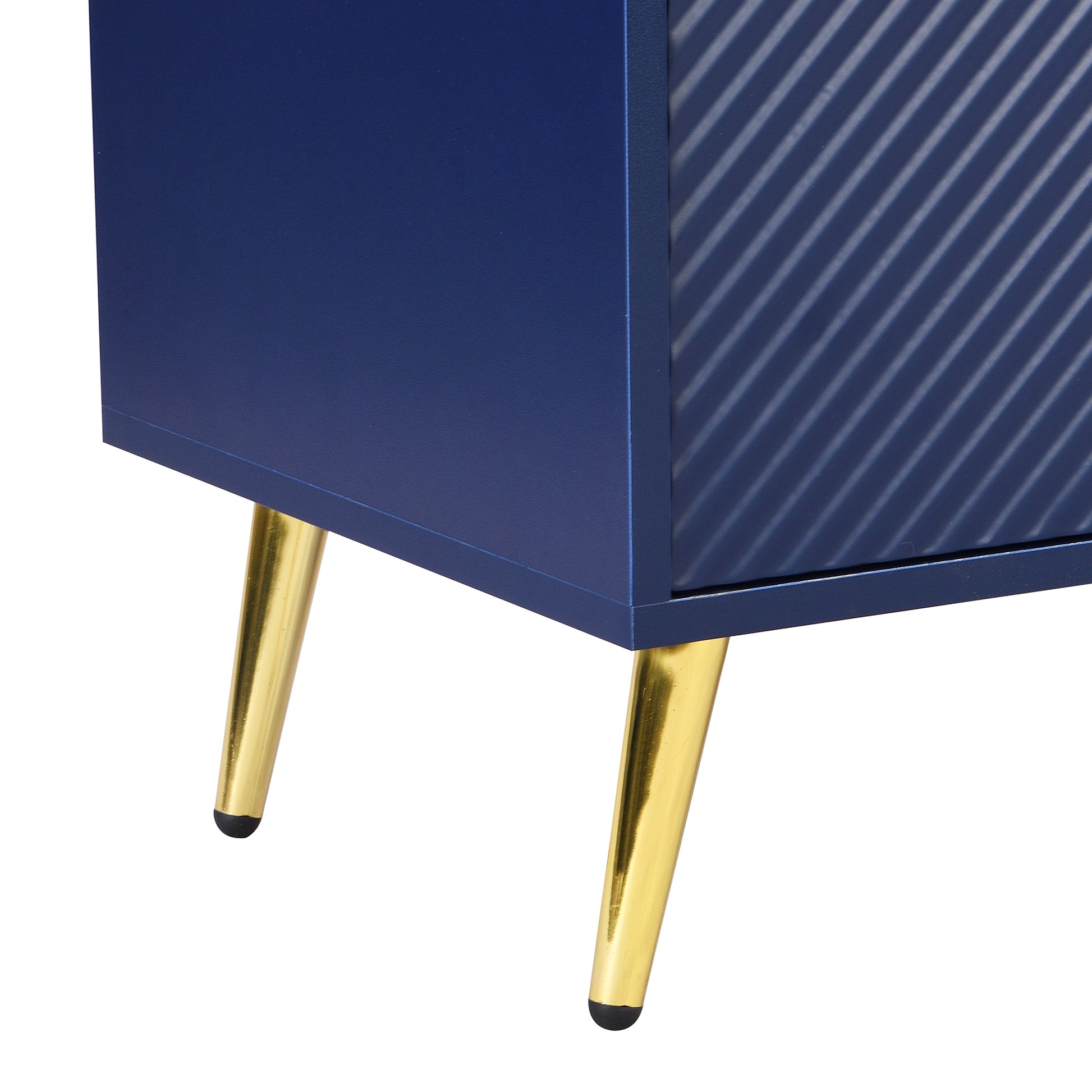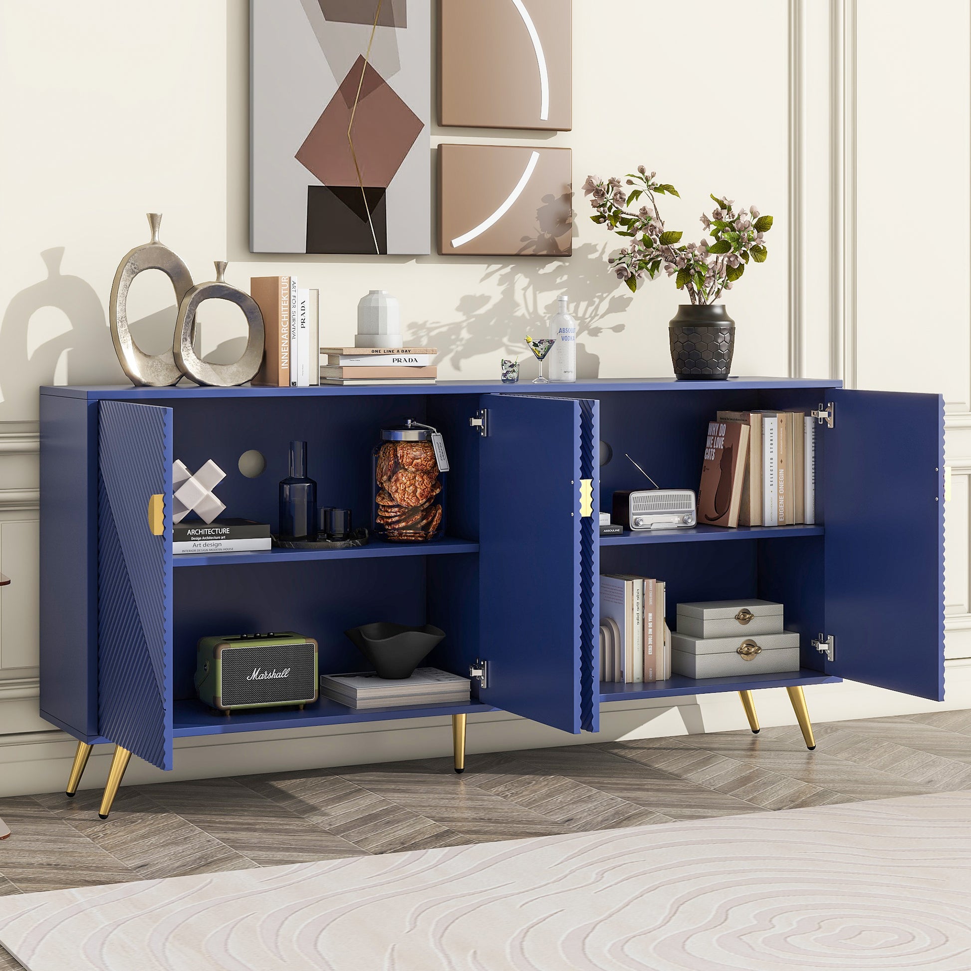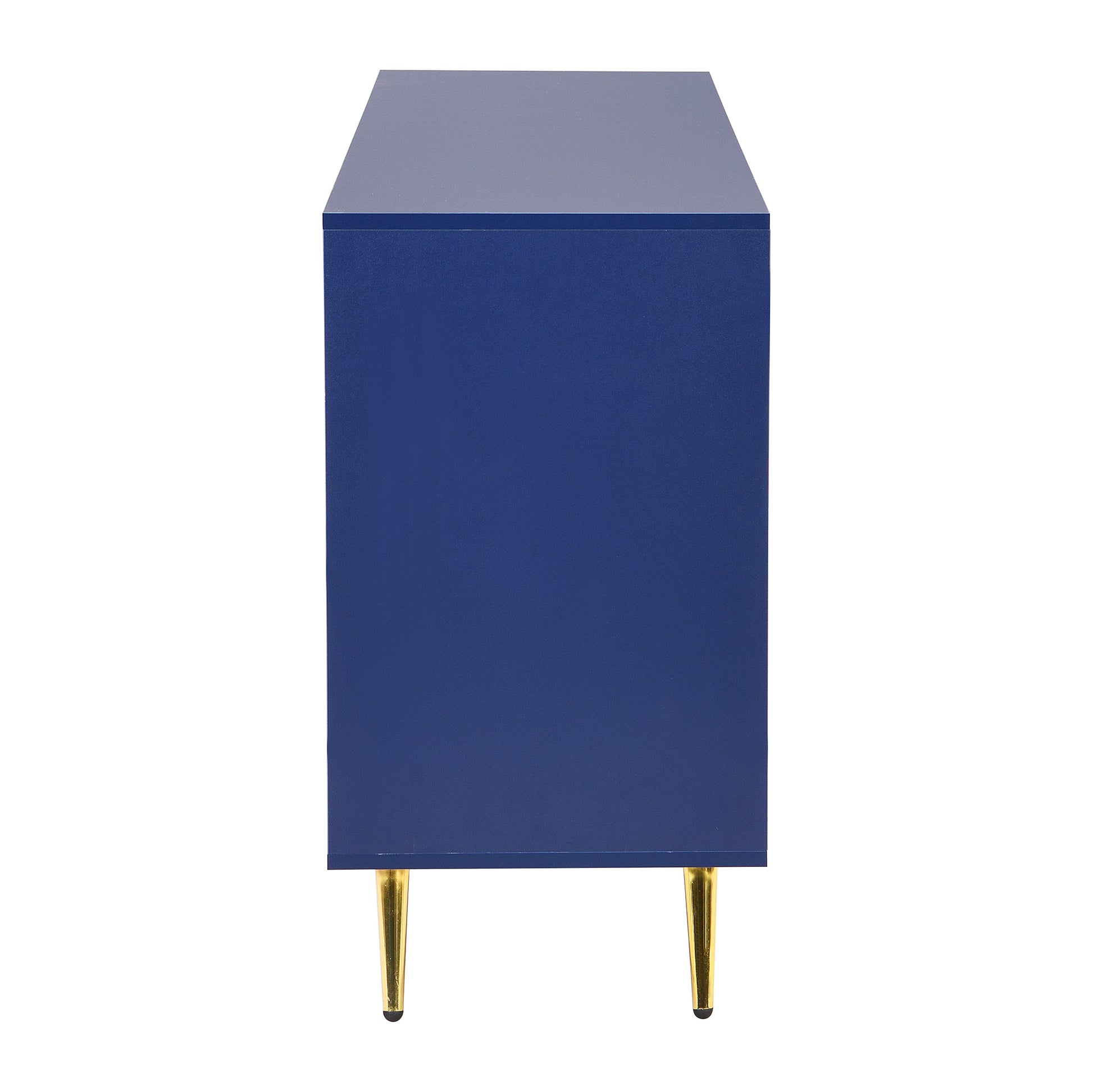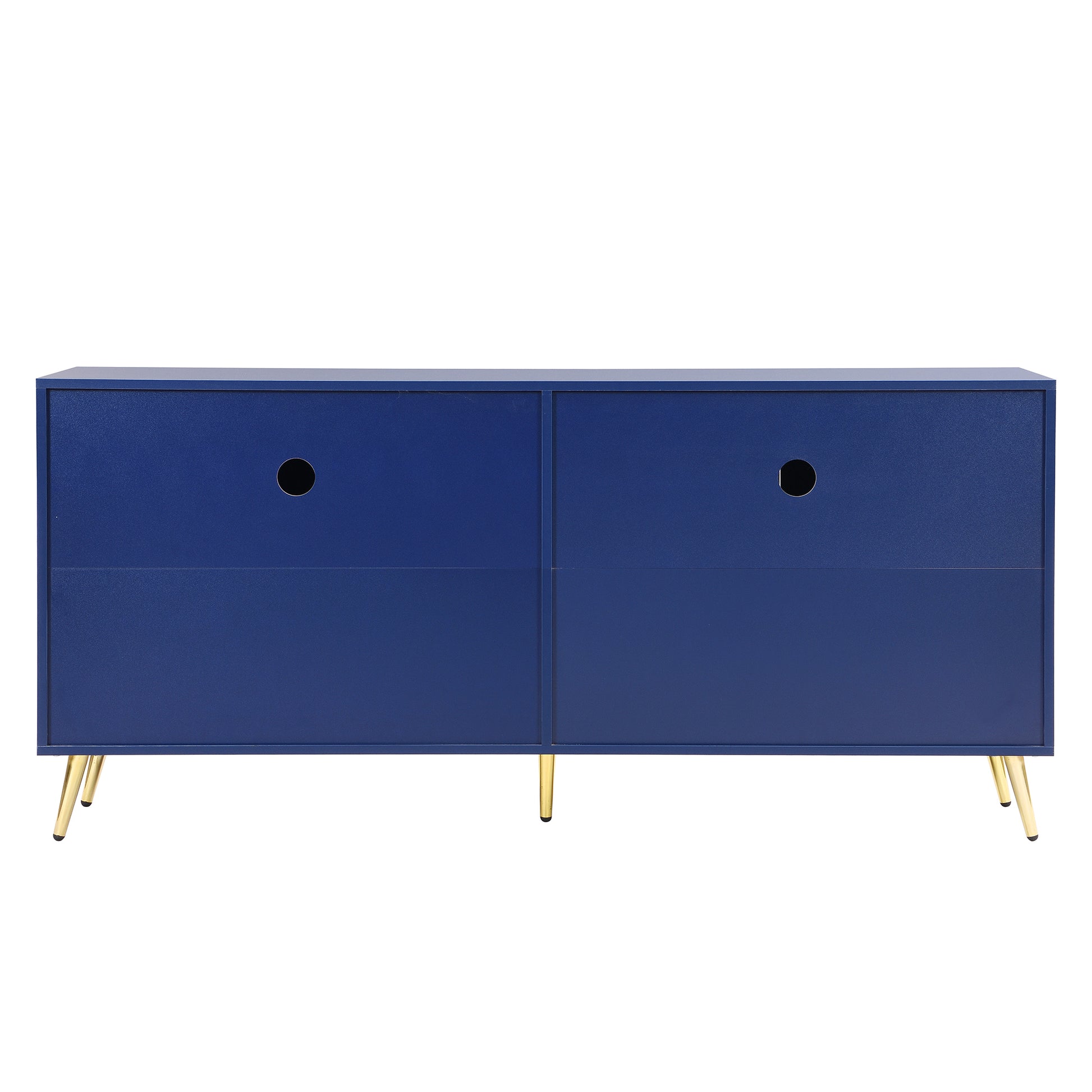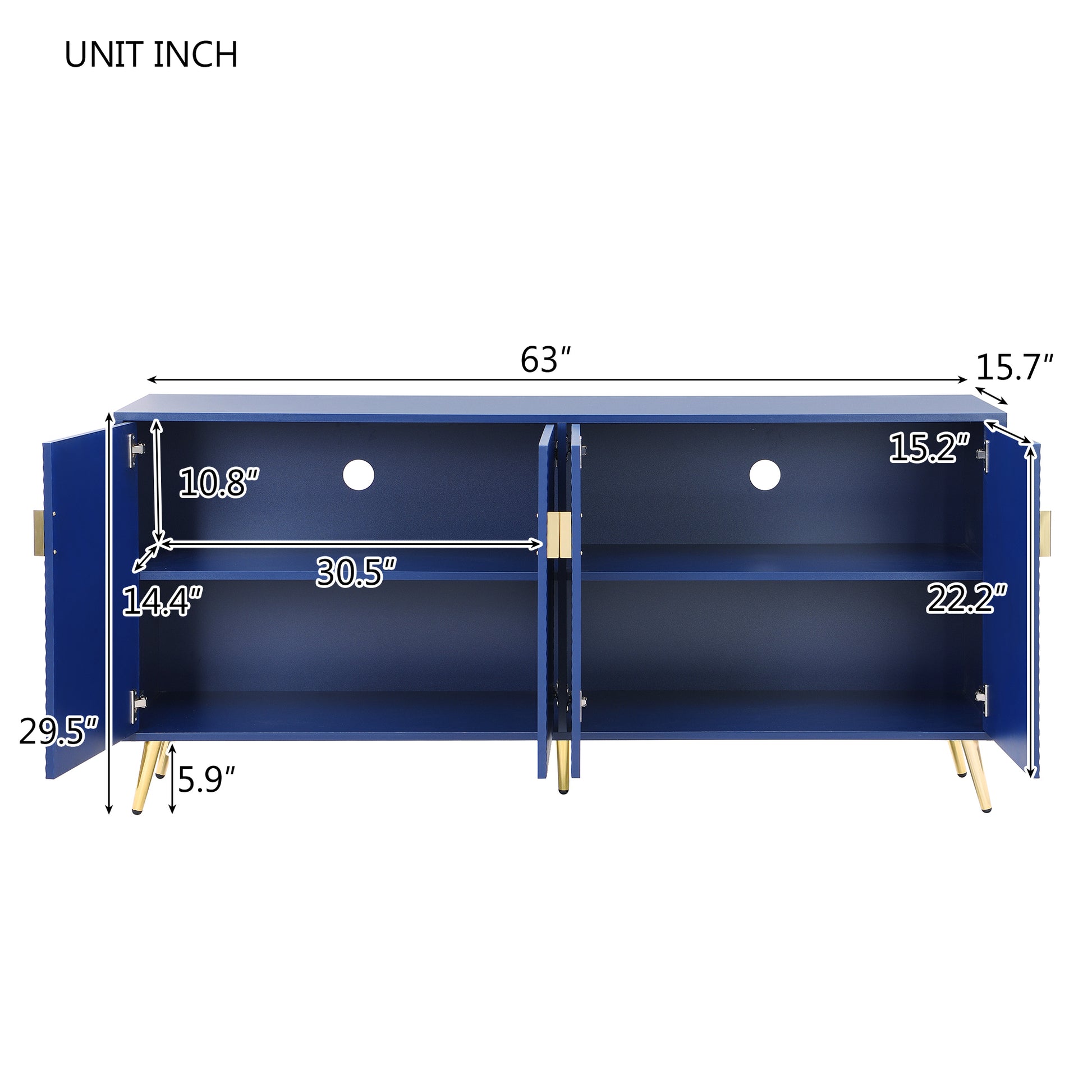 Minimalist large capacity storage TV cabinet is the perfect combination of style and functionality. Its spacious shelves cater to your storage needs, while the exquisite metal handles and legs add a touch of sophistication. The sleek lines on the cabinet doors create a modern and minimalist look, and the storage holes on the back panel enhance its practicality. This cabinet is not only a convenient storage solution, but also a stylish addition to any living space. It can serve as a storage cabinet, sideboard, TV cabinet for living rooms,dining rooms, kitchens and bedrooms.