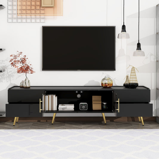 U-Can Modern TV Stand for TVs up to 75 Inches, Storage Cabinet with Drawers and Cabinets, Wood TV Console Table with Metal Legs and Handles for Living room, Black
