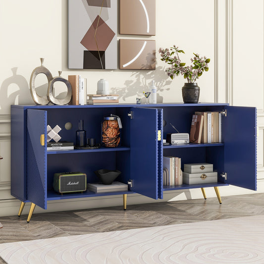 U-Can Modern TV Stand for TVs up to 80 Inches, Entertainment Center with 4 Cabinets, Wood Media Console with Metal Legs and Handles for Living room, Black