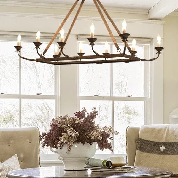 Lustre rectangulaire à 10 lumières, lustre linéaire de 48 po, corde de chanvre