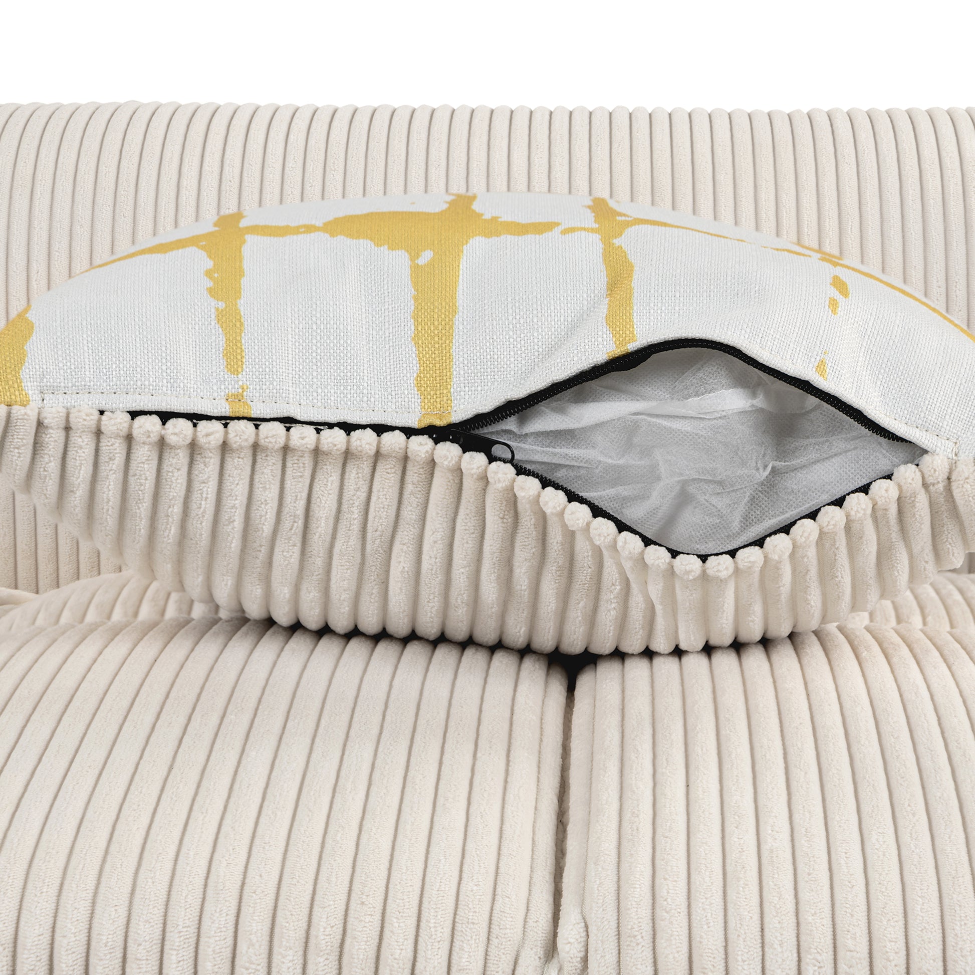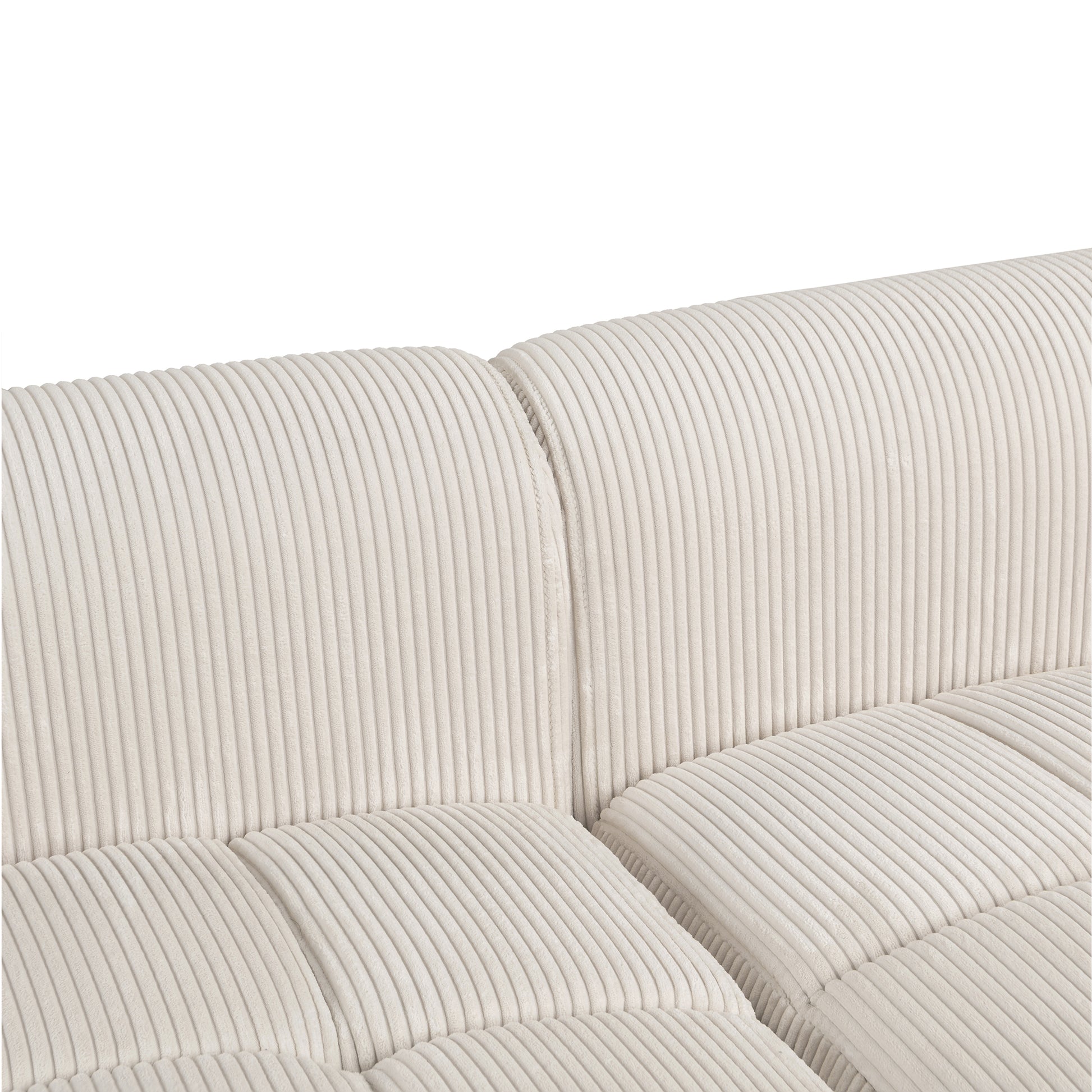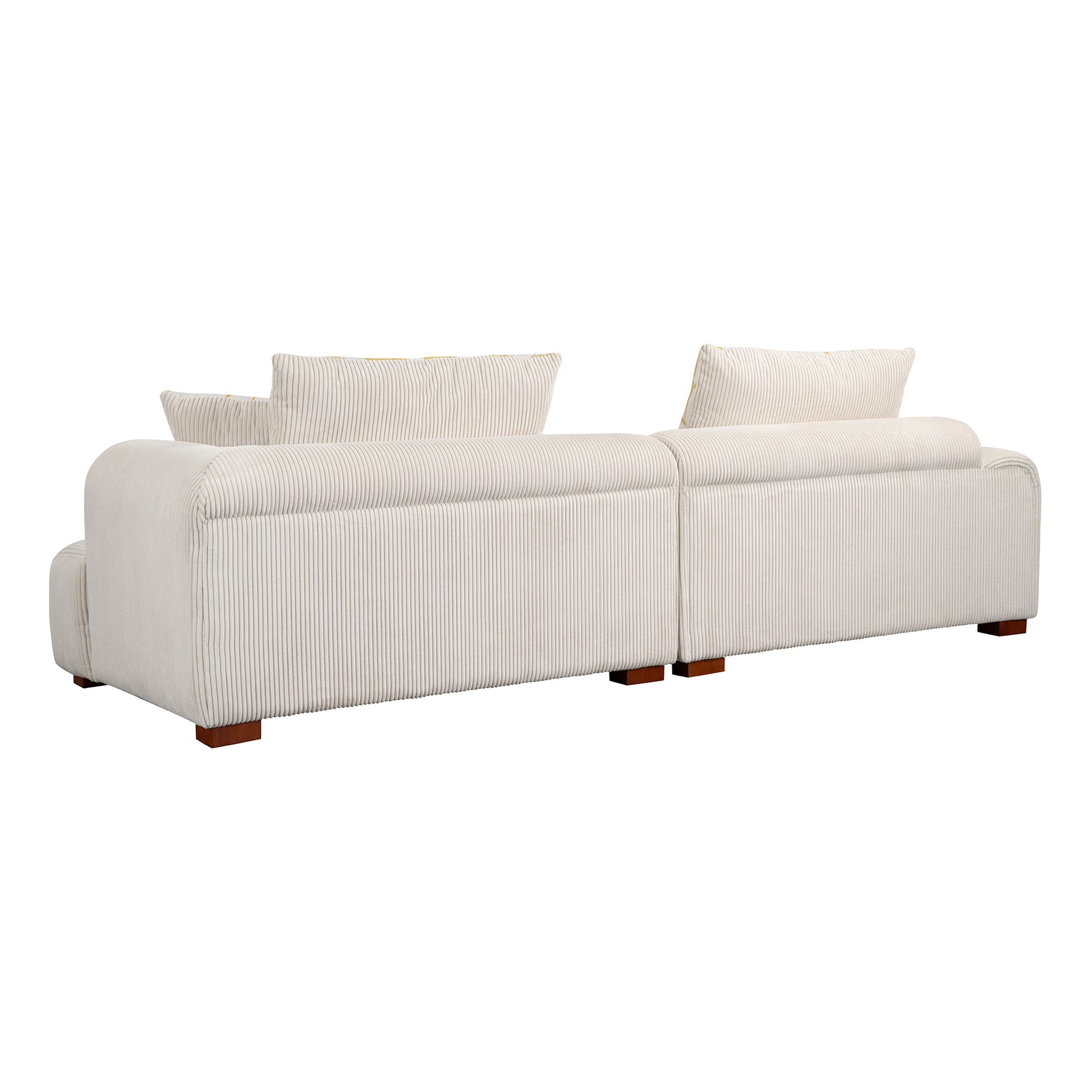 103.9" Modern Couch Corduroy Fabric Comfy Sofa with Rubber Wood Legs, 4 Pillows for Living Room, Bedroom, Office, Beige