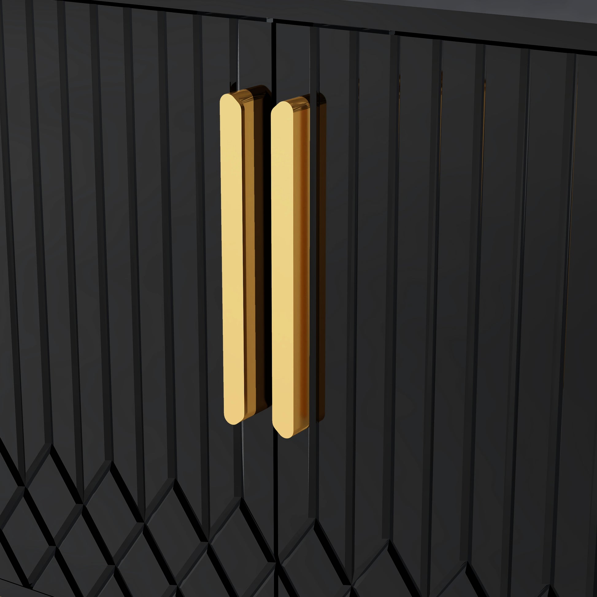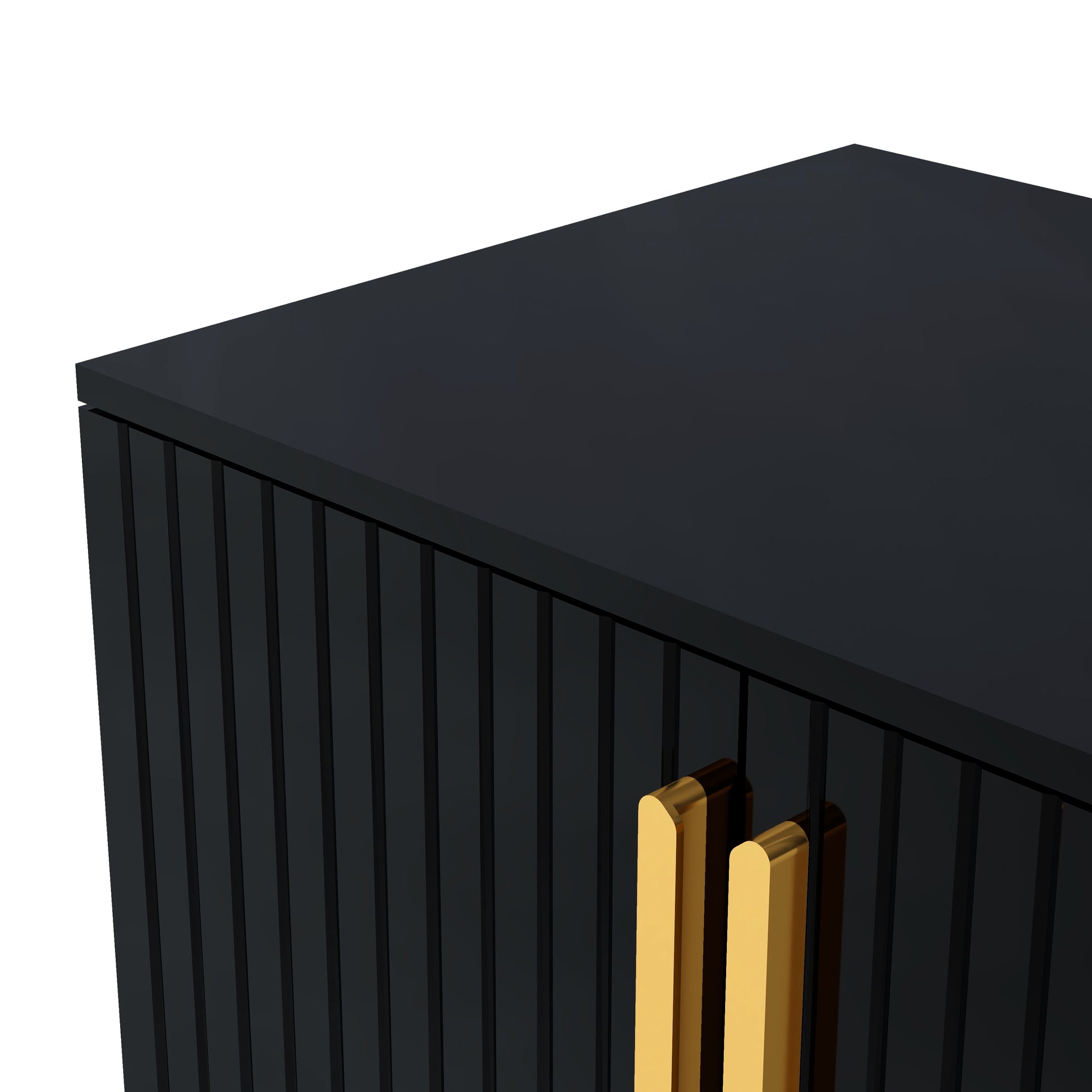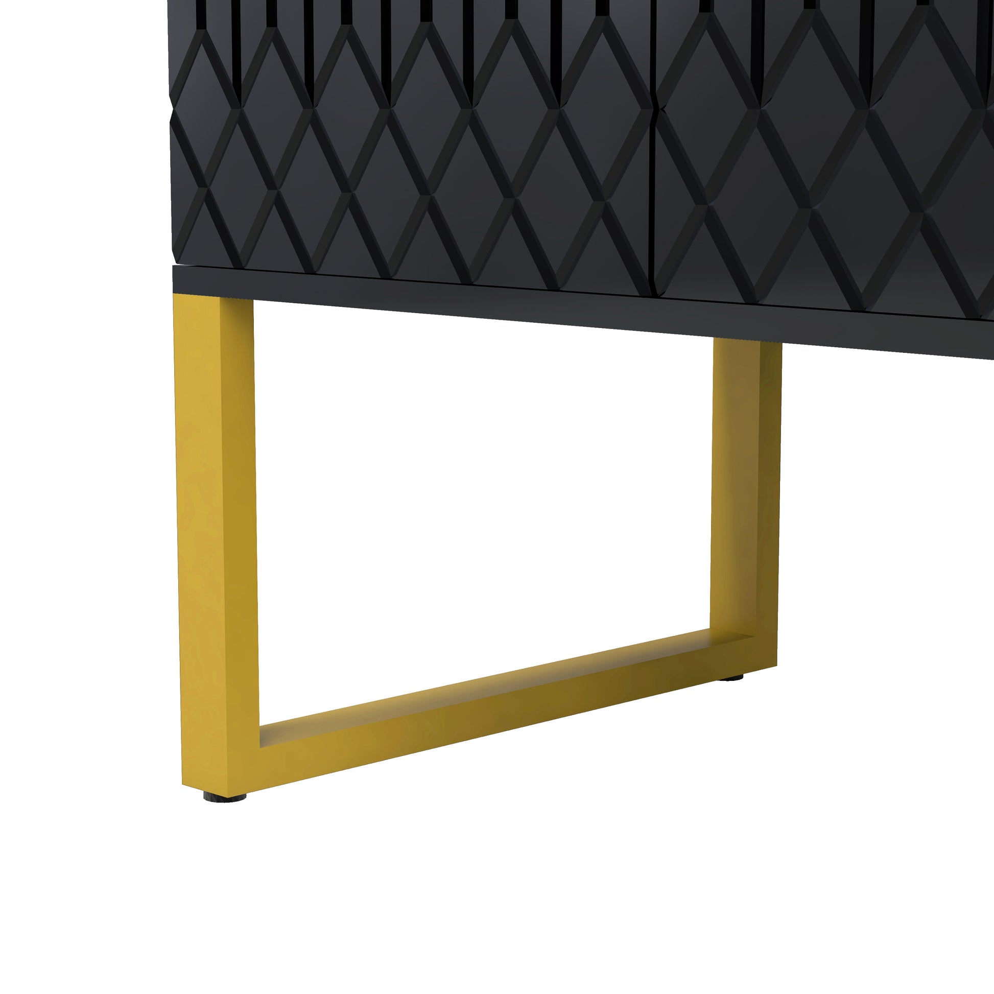 U-Can Modern TV Stand for TVs up to 75 Inches, Storage Cabinet with Drawers and Cabinets, Wood TV Console Table with Metal Legs and Handles for Living room, Black