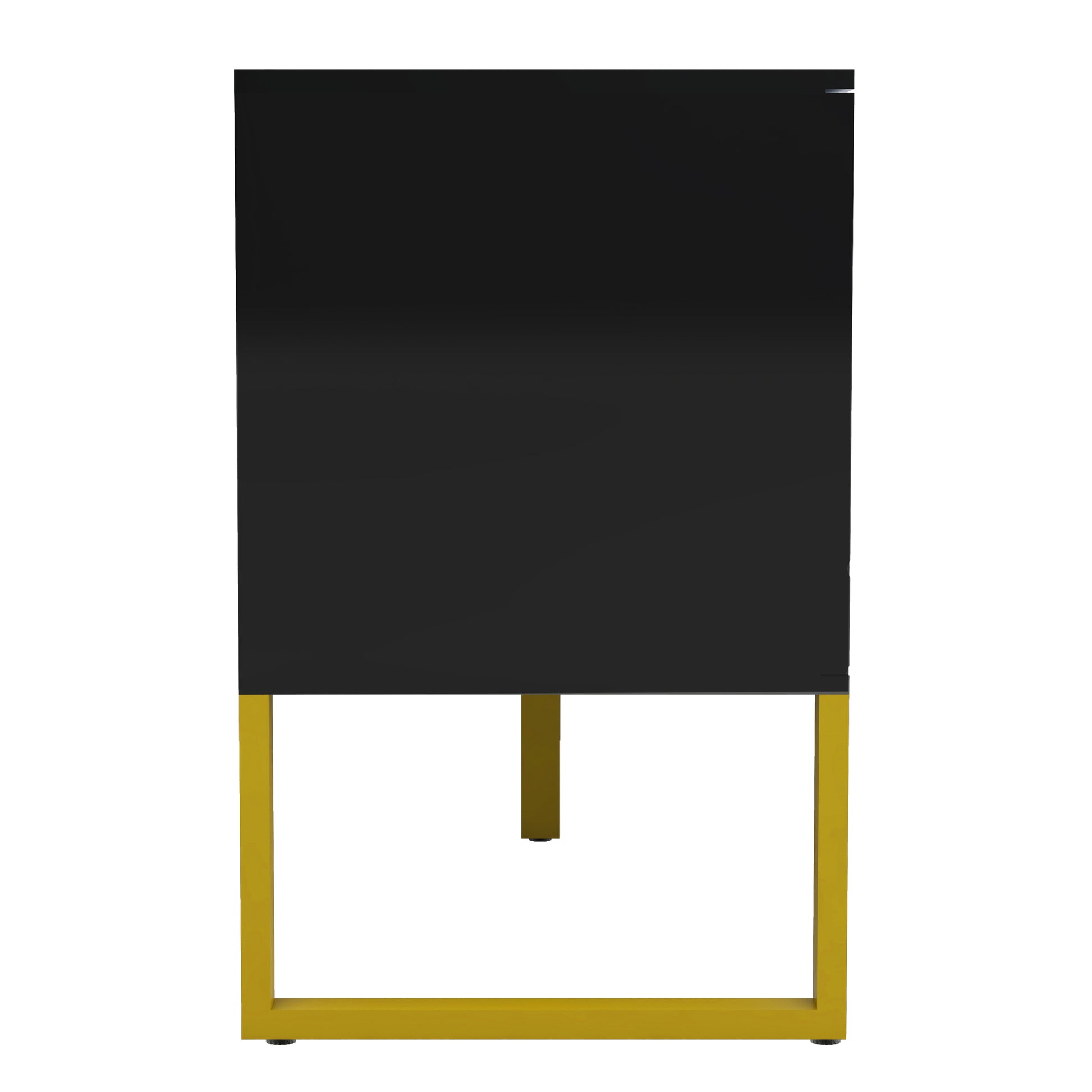 Combining aesthetics with functionality, this contemporary TV Stand will be the centerpiece in your home. It consists of a set of 2 spacious drawers and cabinets, providing plenty of storage space for all your essentials, such as books, blankets, remote controls, snacks, CDs, etc. Made of high-quality MDF board and sturdy metal frame to bear maximum weight.Its perfect size and practical design are ideal for living room, bedroom, office and other places.