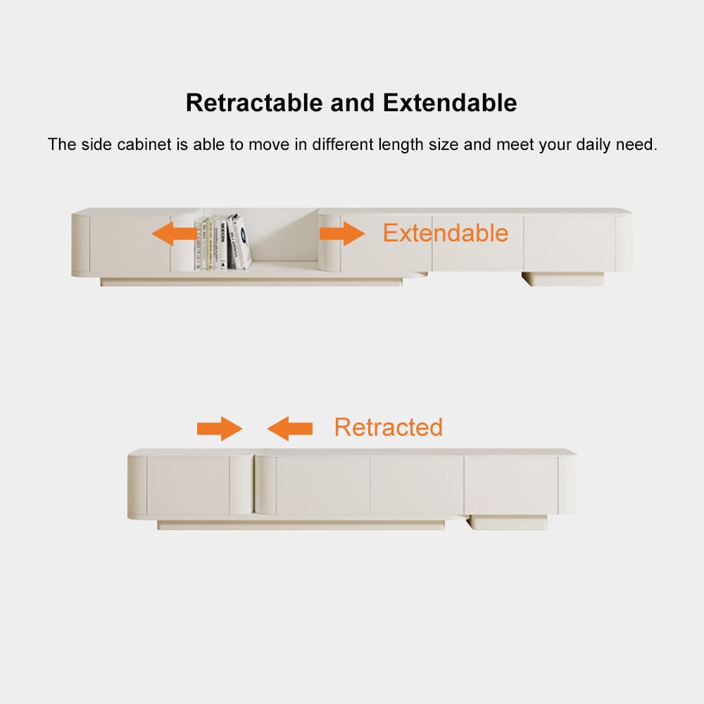 An extensible TV stand has an amazing retracted and expandable design. Its presence perfectly illustrates the combination of function and aesthetics. Cream style color scheme creates a healing and relaxing living room atmosphere. Multiple storage space partition design, more trivial objects can be easily accommodated.