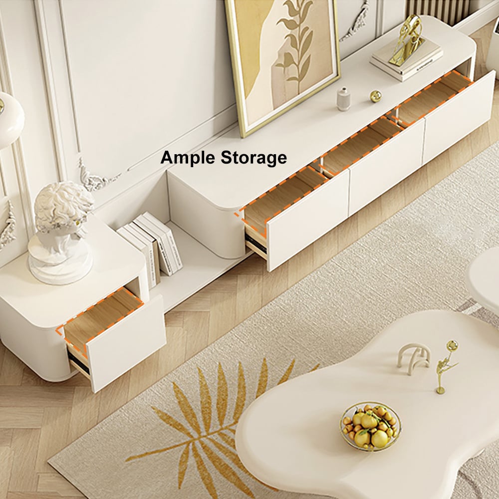 118.1" Off White Modern Wood Extendable TV Stand with 4 Drawer Media Console