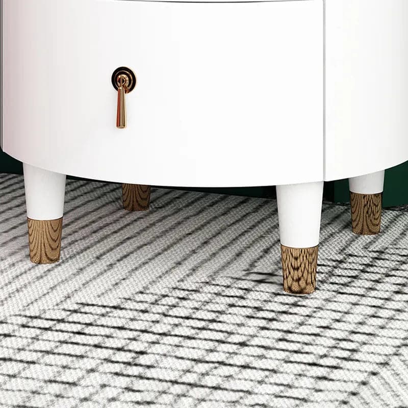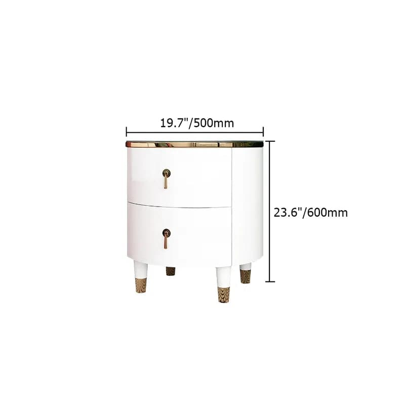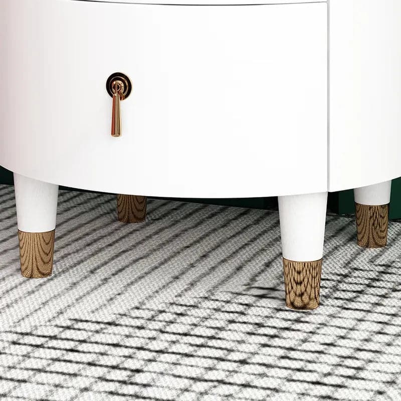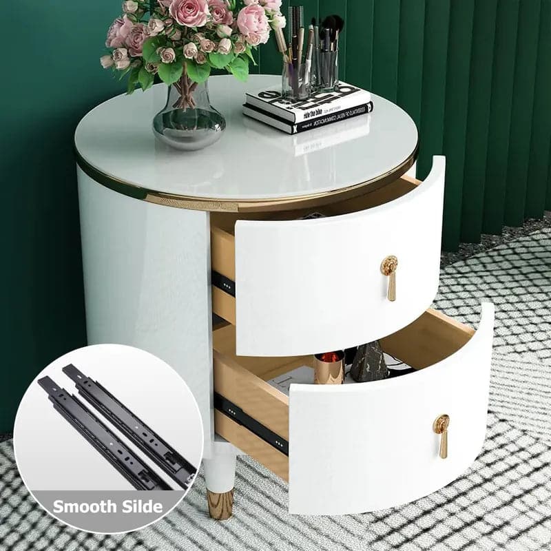 Table de chevet ronde à 2 tiroirs, moderne, blanche, finition dorée