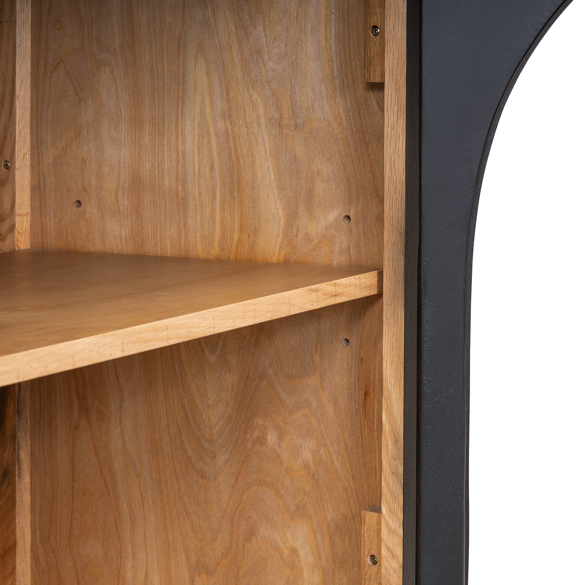 Traditional retro style sideboard, very classic and low-key, makes your furniture look more natural and beautiful. The arched design of four cabinet doors and the superior glass material make this sideboard add uniqueness and personality. Equipped with four convenient and durable metal linear long handles, and clear line in the backboard as opening the cabinet door, this sideboard is more beautiful and practical.