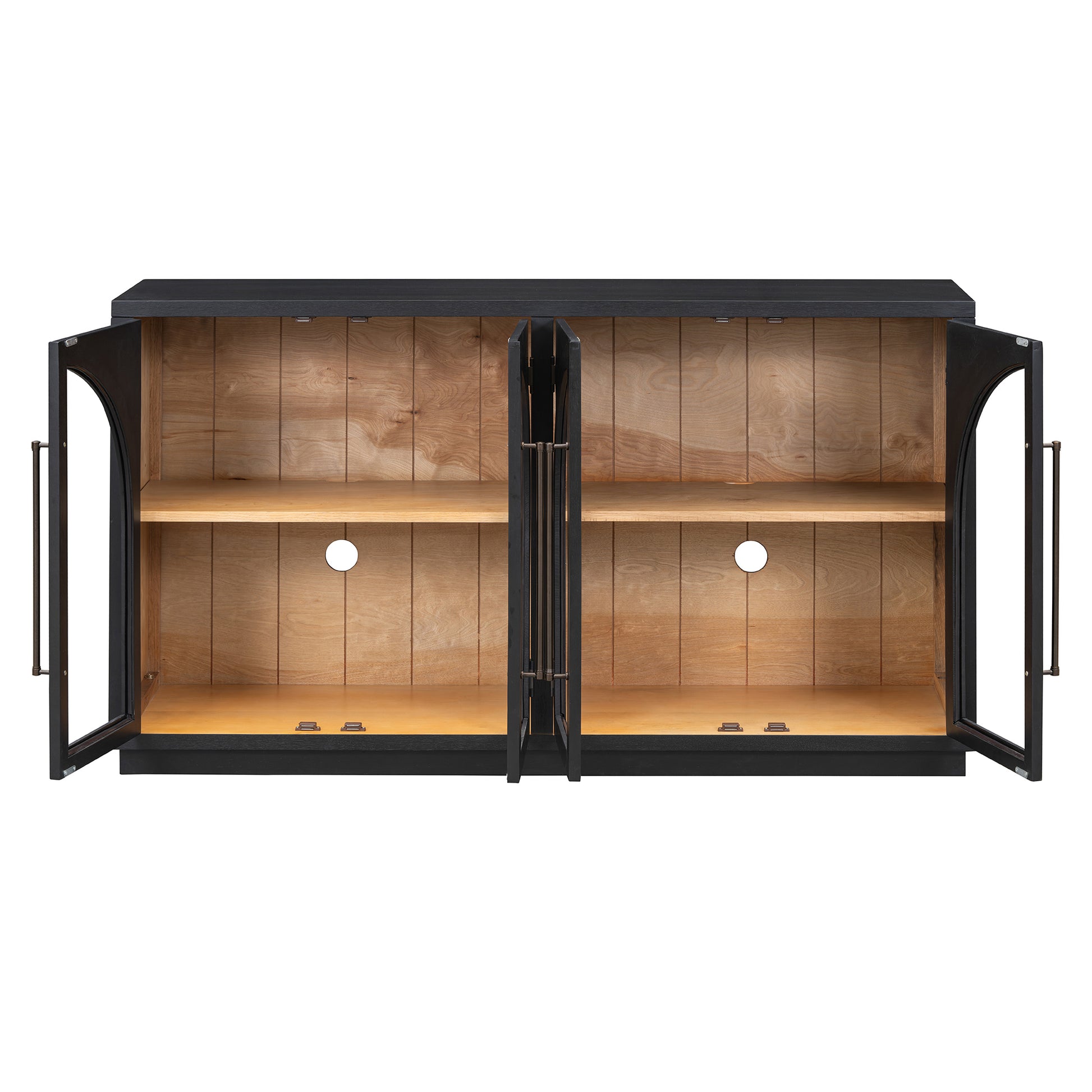 The sideboard features adjustable shelves in both cabinets with three height options or removable for maximum space. Two round holes on the backboard are more convenient for you. In addition, this sideboard also has a magnetic device that locks when the door is closed. It is silent and also protects the door. The sideboard measures 60''L×16''W×34"H.
