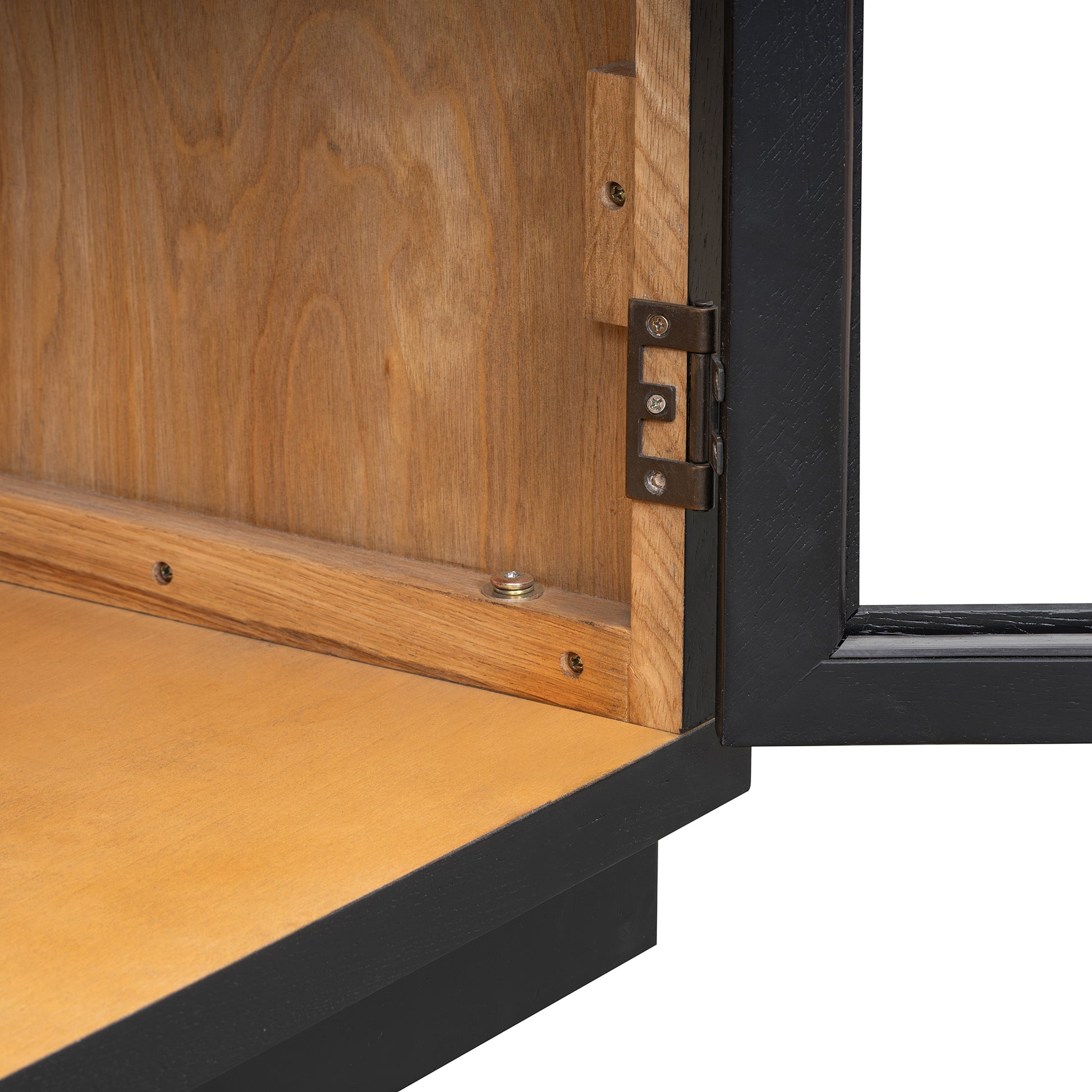 • High-Quality Materials: The sideboard, made of high-quality MDF with an oak veneer and a rubber wood frame, ensures sturdiness and stability. Metal handles resist deformation. Its spray-painted wooden surface with wire drawing and glazing gives an exquisite appearance, using eco-friendly, odorless materials. Tabletop capacity: 275 LBS, shelf capacity: 150 LBS, bottom shelf capacity: 275 LBS.