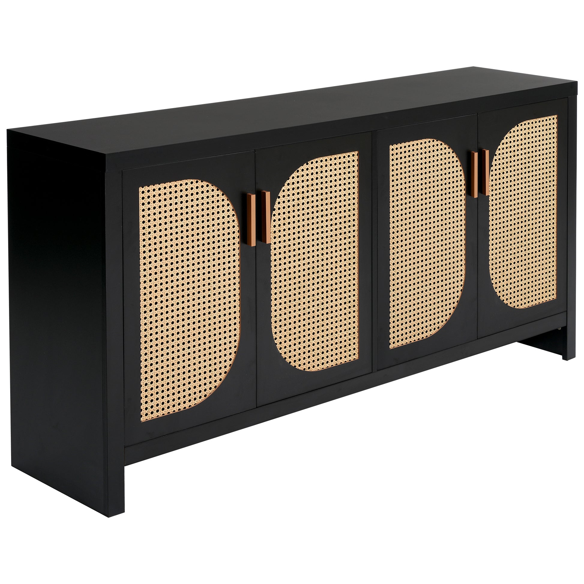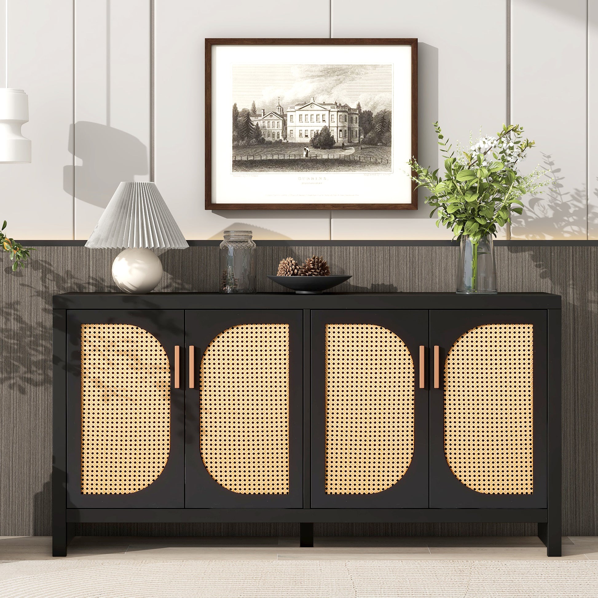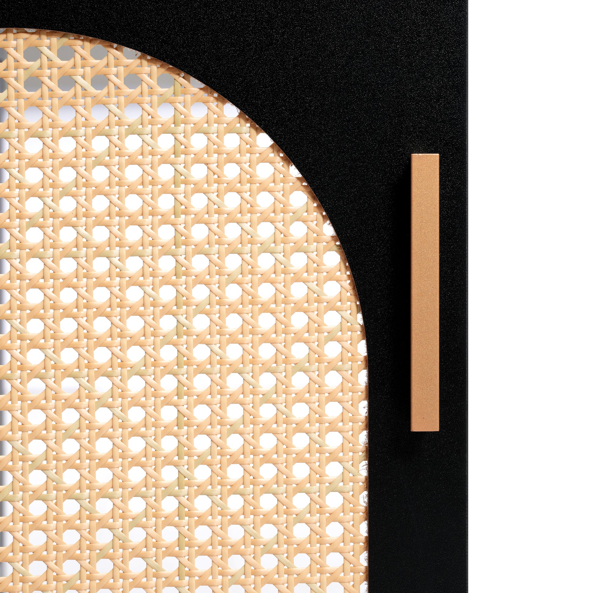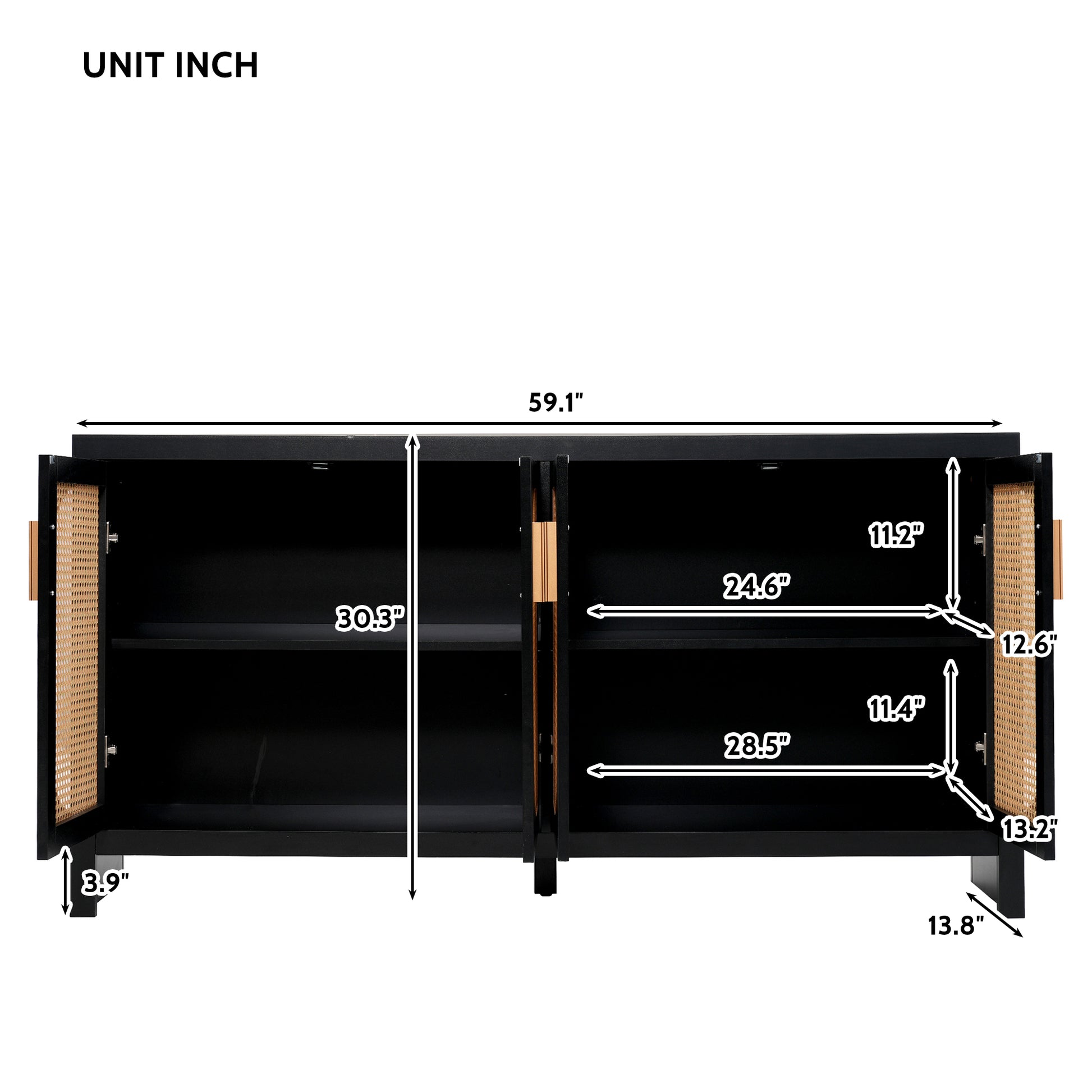 U-Can Modern TV Stand for 65-inch TV with Rattan Doors, Adjustable Shelves and Metal Handles for Living Room, Black