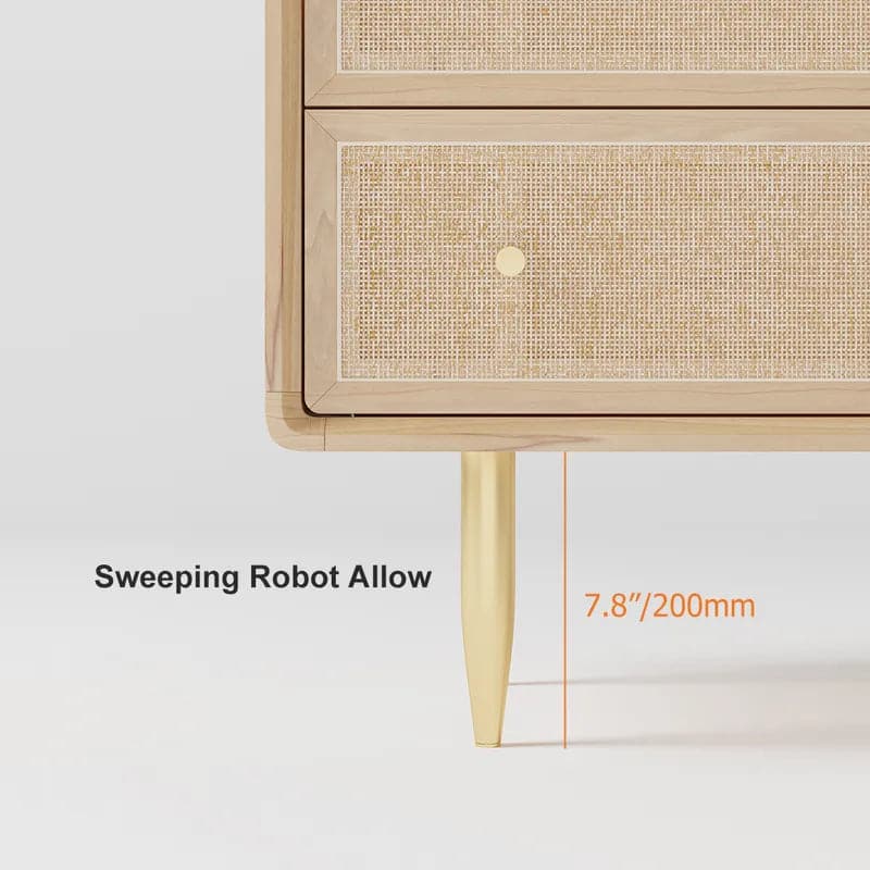 Commode de chambre nordique naturelle de 53 po avec 6 tiroirs en rotin tissé doré