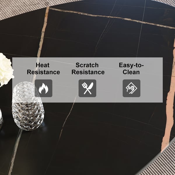 Débordante de glamour et de luxe, cette table à manger distinctive suscitera à coup sûr des conversations lors de repas de famille décontractés et de dîners ! Le plateau de table en pierre frittée présente une grande silhouette ovale pouvant accueillir six personnes pour se réunir et dîner avec style. Fabriquée en acier au carbone durable, la base du piédestal forme un support triangulaire stable, qui confère instantanément un attrait accrocheur à votre arrangement. Impressionnante avec son profil aéré mais robuste, cette table de salle à manger ovale conviendra à coup sûr à votre décor pour un style ultra-contemporain.