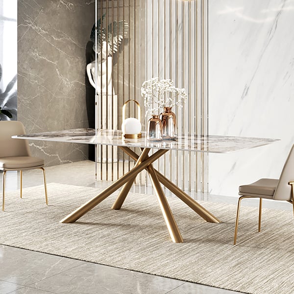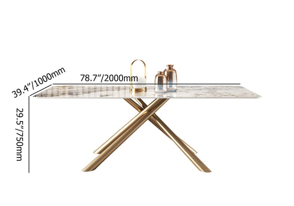 Table de salle à manger rectangulaire moderne de 71 po avec plateau en pierre frittée et tréteau en acier inoxydable