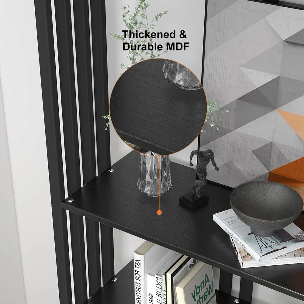 Étagère moderne en acier de 78 pouces, présentoir à 6 étagères en noir, grande étagère à livres