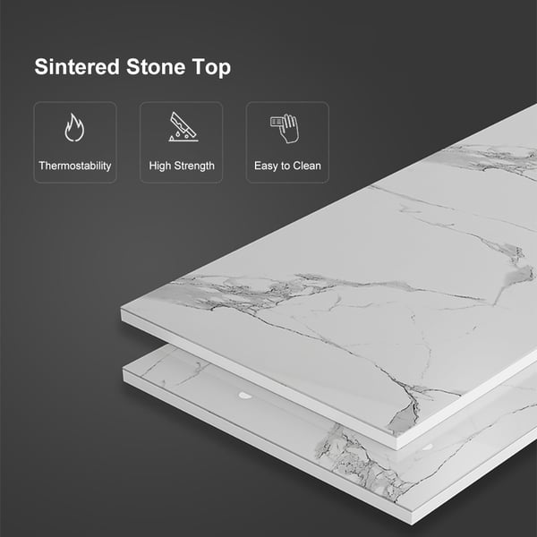 Matériau : MDF, pierre frittée, verre trempé, acier inoxydable.
