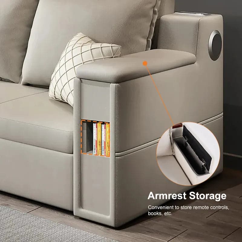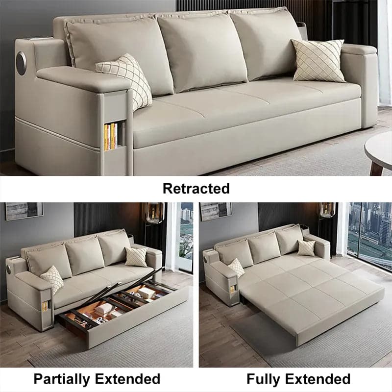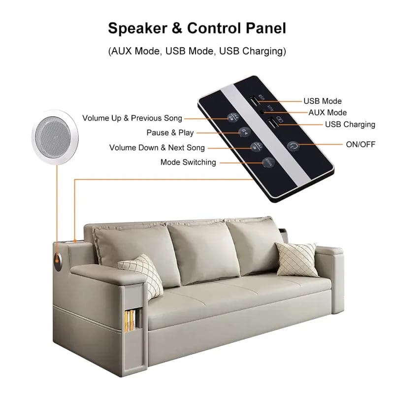 Lit convertible de 82,7 po, canapé-lit double, rangement rembourré Leath-aire avec haut-parleur