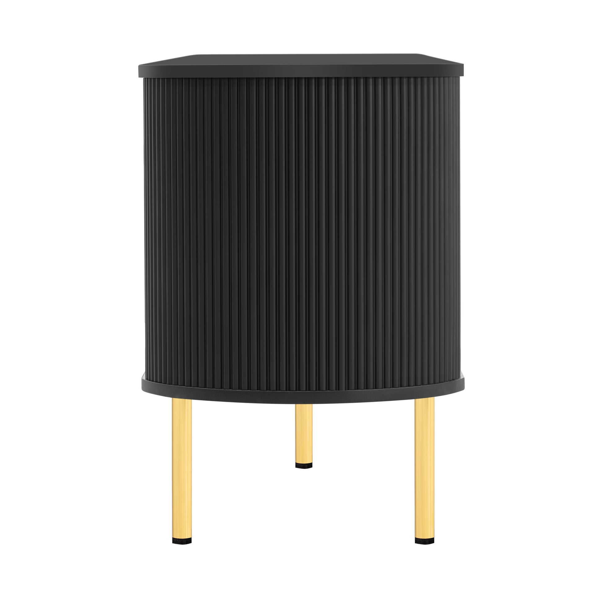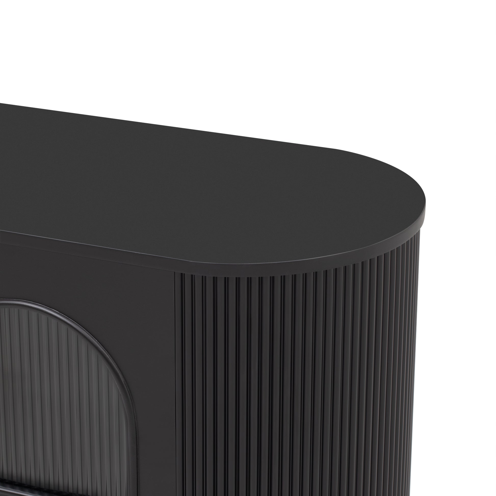 • The curved sides of this TV stand are adorned with vertical grooves, notot only adds a touch of sophistication but also creates a smooth, flowing silhouette that seamlessly integrates with contemporary home decor.