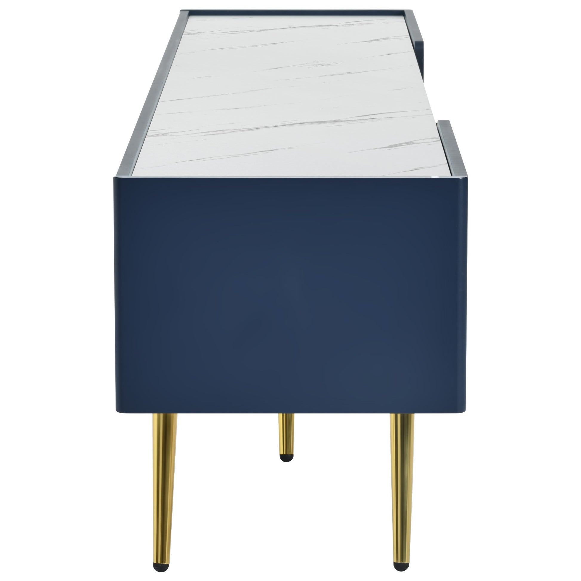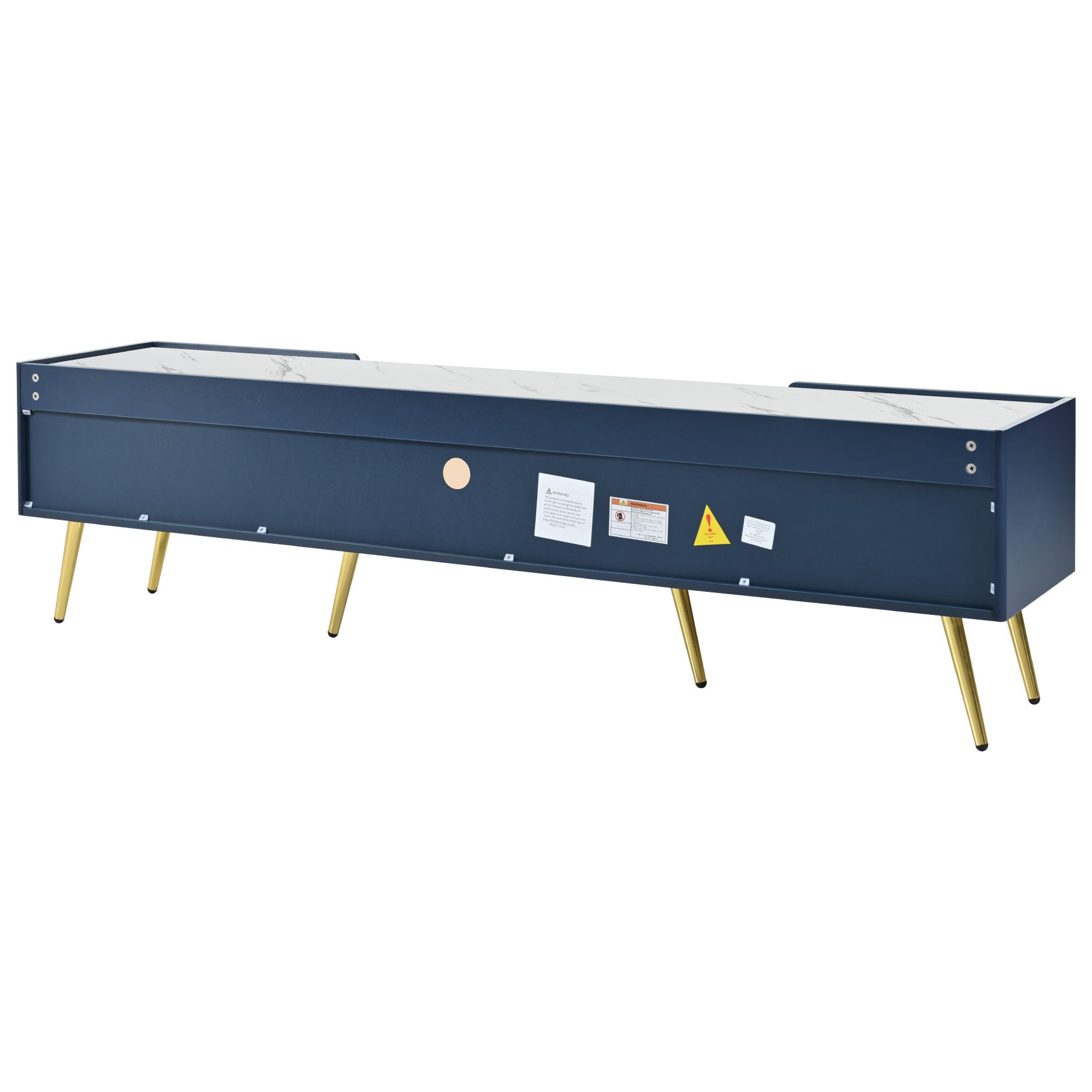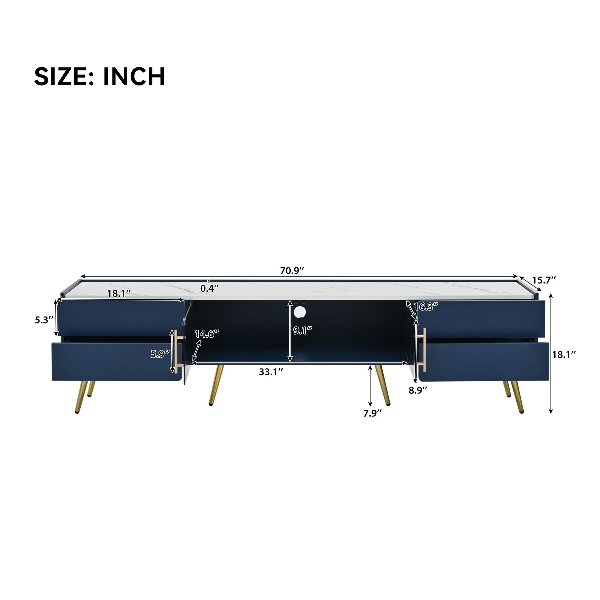 • The combination of marble-patterned top, LED lights, brown glass doors, metal legs and handles gives this TV cabinet a sophisticated look that will elevate the decor of any living room or entertainment space.