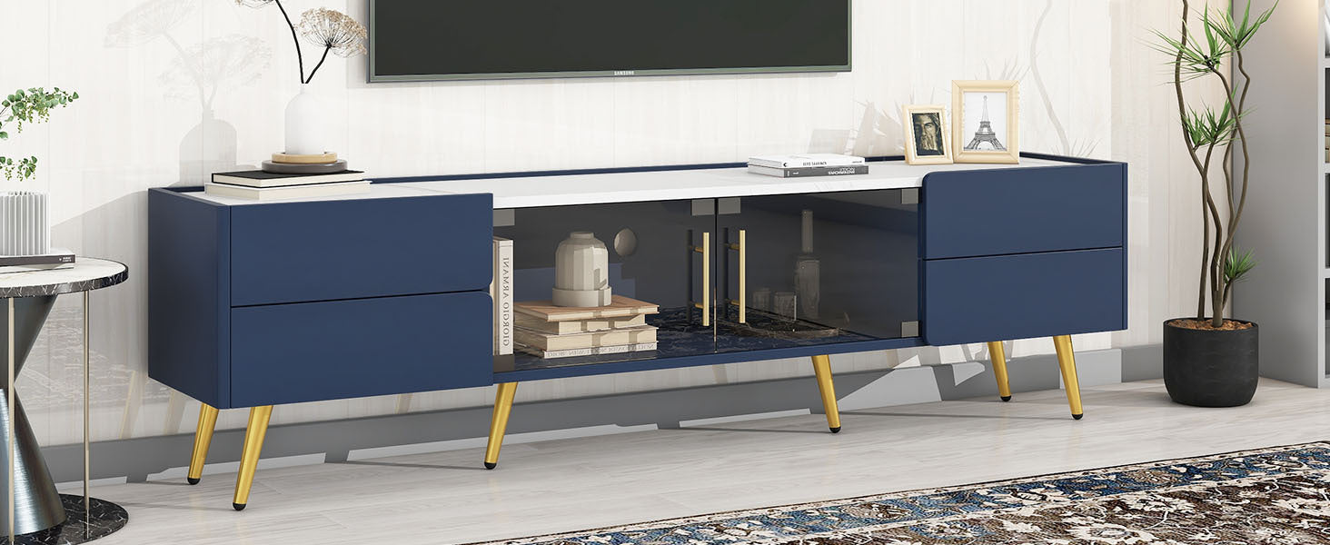 • Featuring four drawers and one spacious cabinet , this unit offers ample space to stow away all your entertainment essentials with ease. Whether it's DVDs, gaming consoles, or audiovisual equipment, the cabinets provide discreet storage solutions that keep clutter at bay while maintaining a clean and organized living space.