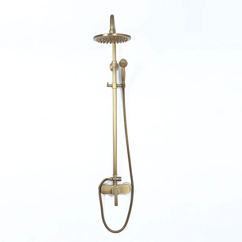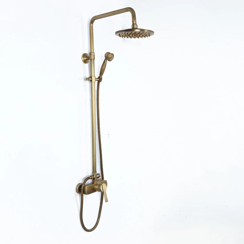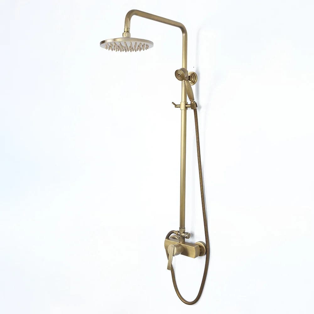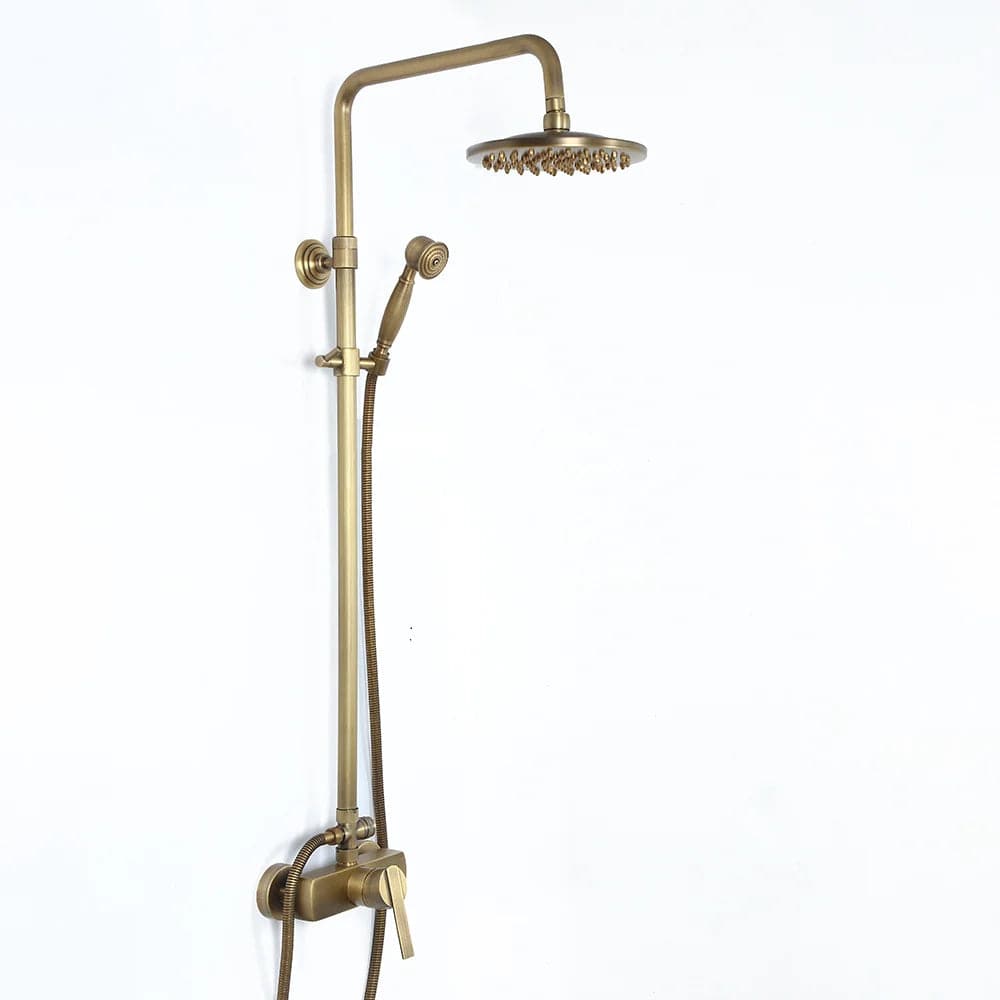 Mettez à jour le décor de votre salle de bain avec cet ensemble de douche de style traditionnel donnant à la maison un look intemporel et magnifique. Fini en laiton antique raffiné, il apporte un charme d'antan pour se démarquer de la foule. La pomme de douche de 8" (200 mm) fait couler de l'eau sur votre peau et élimine la fatigue de la journée. Avec une conception réglable en hauteur, la douchette à main peut être placée à n'importe quelle hauteur souhaitée, ce qui convient à toute votre famille. en laiton massif, il a une construction robuste pour résister à l'épreuve du temps.