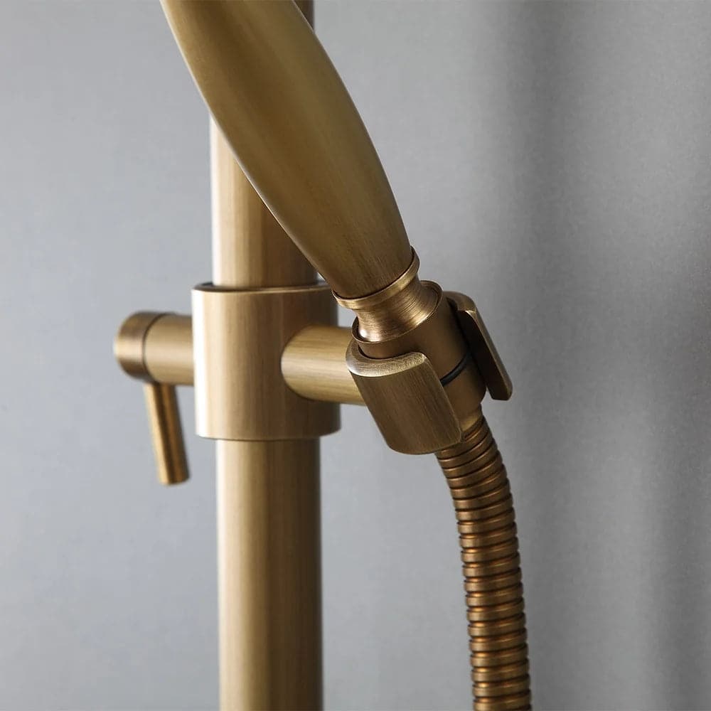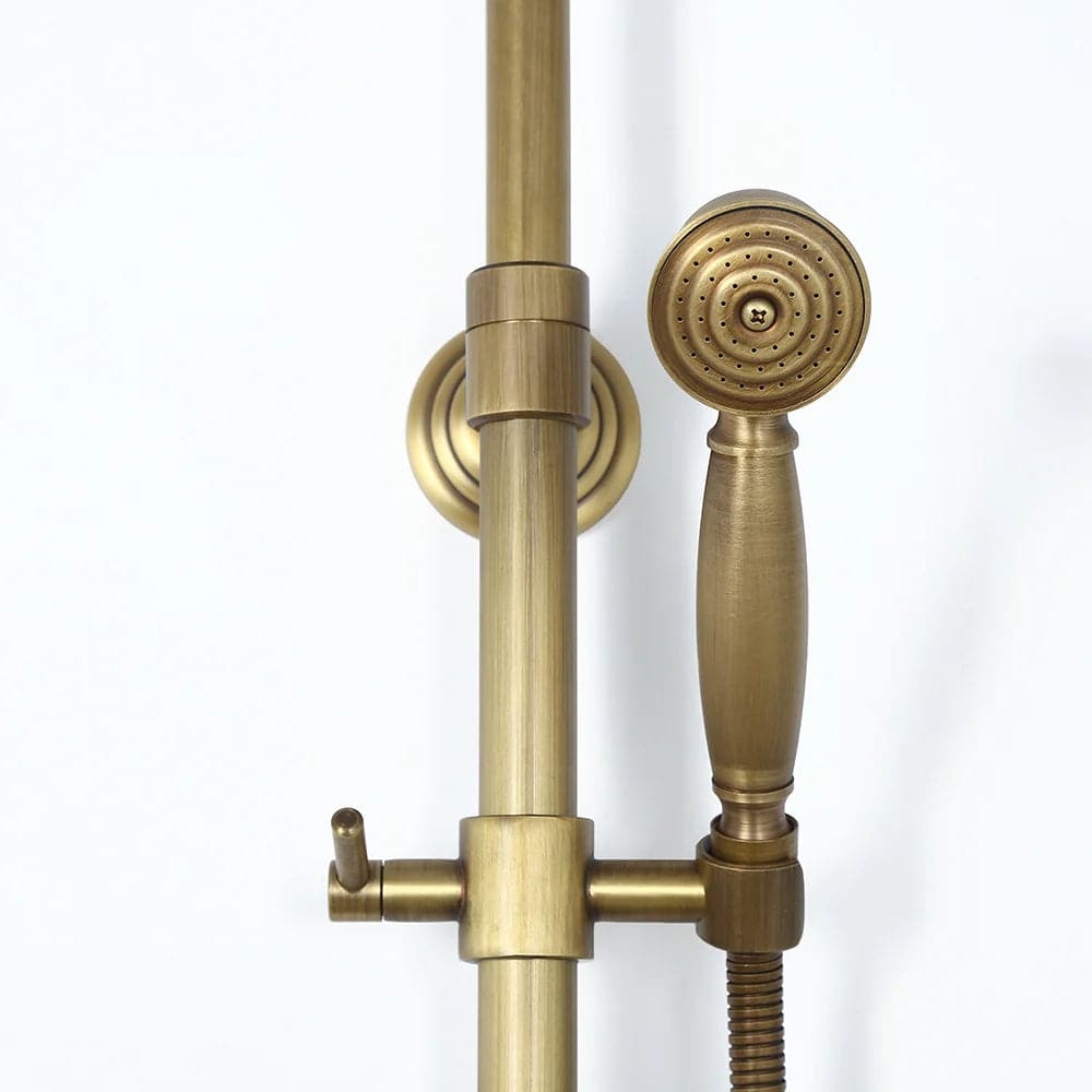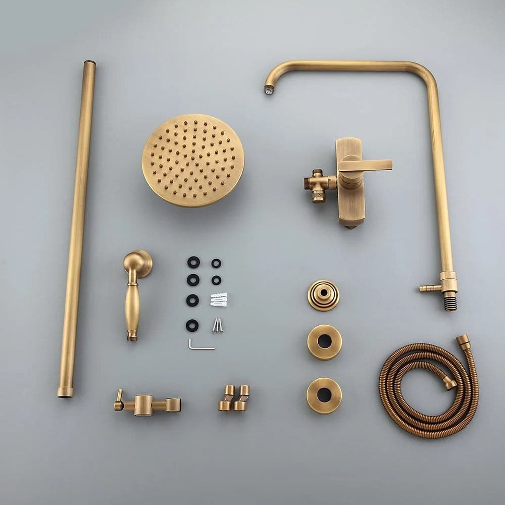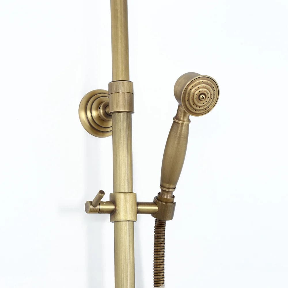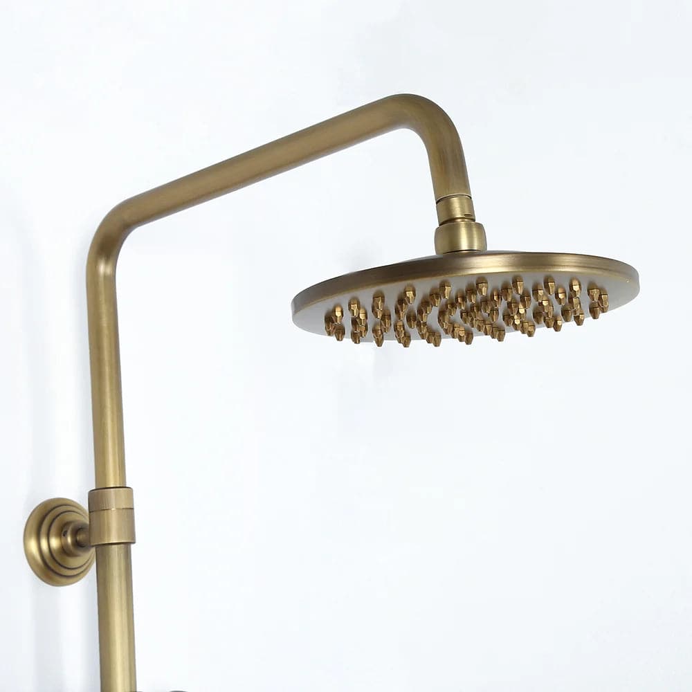 Mettez à jour le décor de votre salle de bain avec cet ensemble de douche de style traditionnel donnant à la maison un look intemporel et magnifique. Fini en laiton antique raffiné, il apporte un charme d'antan pour se démarquer de la foule. La pomme de douche de 8" (200 mm) fait couler de l'eau sur votre peau et élimine la fatigue de la journée. Avec une conception réglable en hauteur, la douchette à main peut être placée à n'importe quelle hauteur souhaitée, ce qui convient à toute votre famille. en laiton massif, il a une construction robuste pour résister à l'épreuve du temps.
