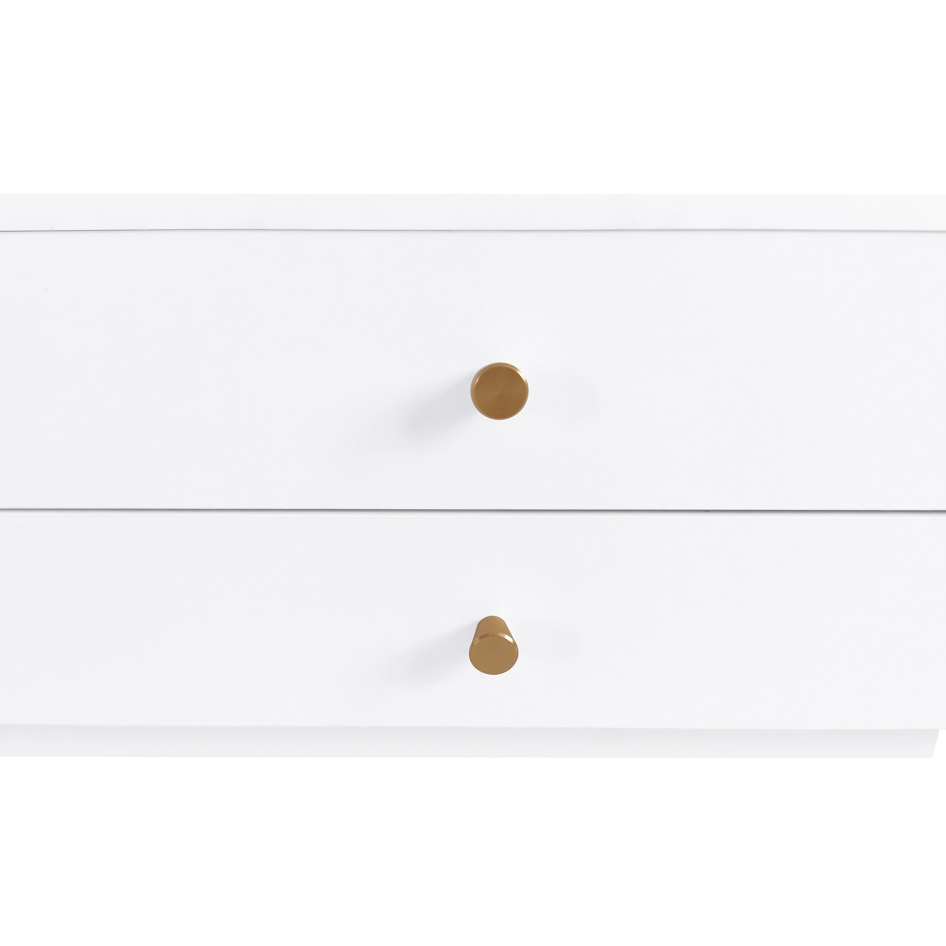 Le meuble TV présente un design élégant et moderne avec des lignes douces et une palette de couleurs pures avec des poignées en métal, créant un accent visuellement attrayant pour n'importe quel espace de vie. Le panneau supérieur est traité avec une finition mate, offrant un look à la fois subtil et sophistiqué.