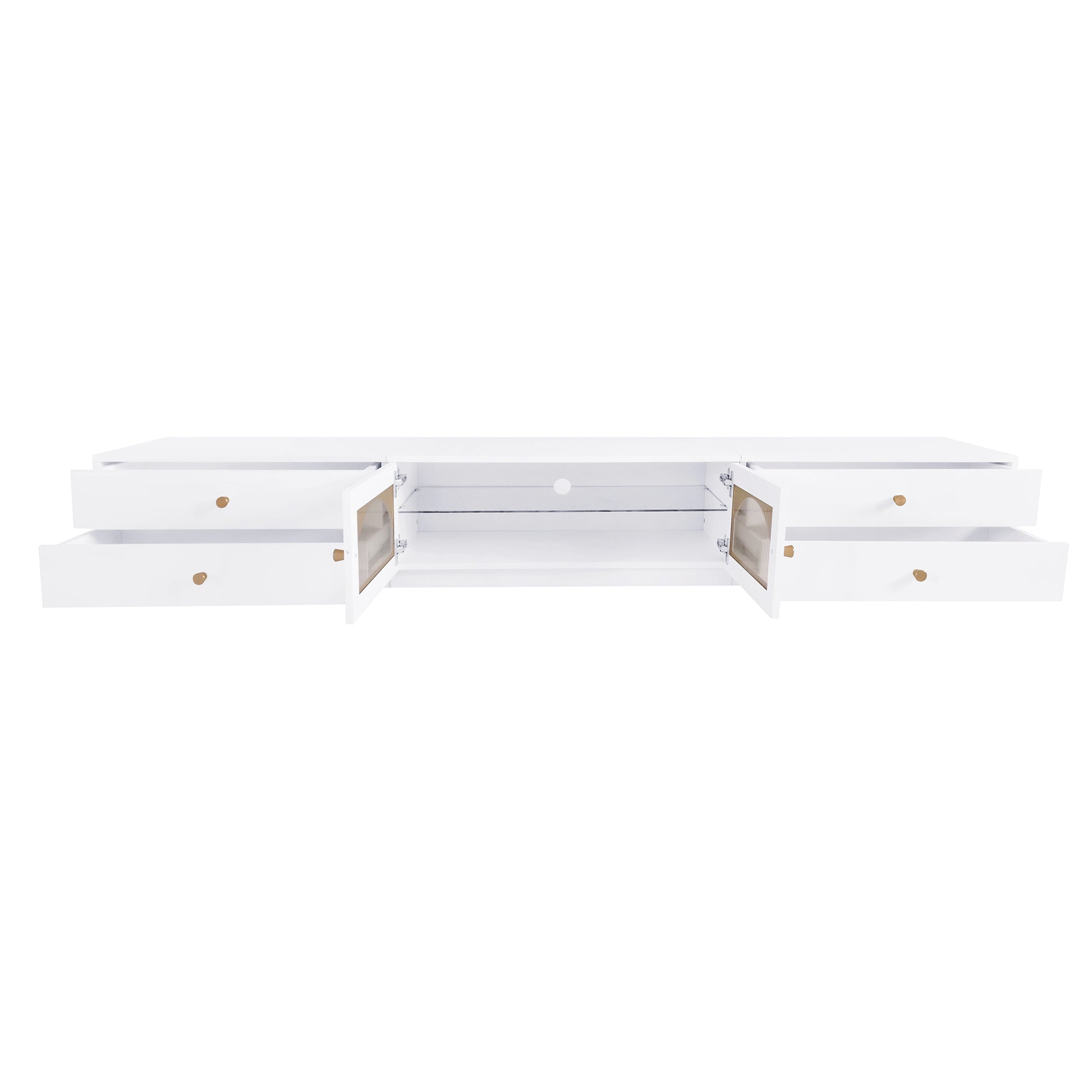 ON-TREND Meuble TV luxueux avec portes en verre cannelé, console multimédia élégante et fonctionnelle pour téléviseurs jusqu'à 95", meuble TV avec étagère en verre trempé avec plusieurs options de rangement, blanc