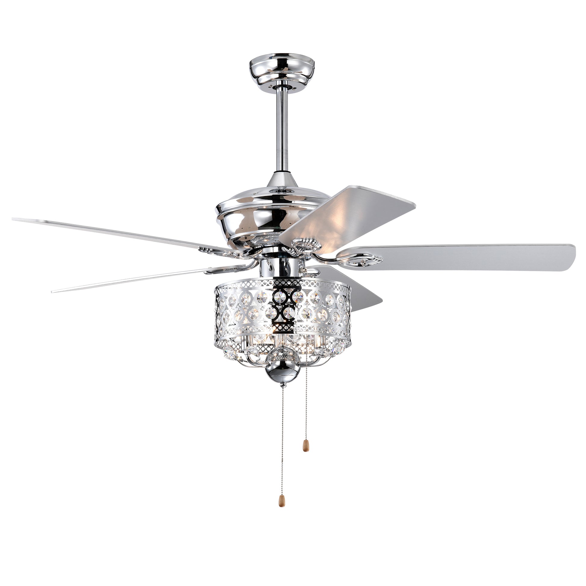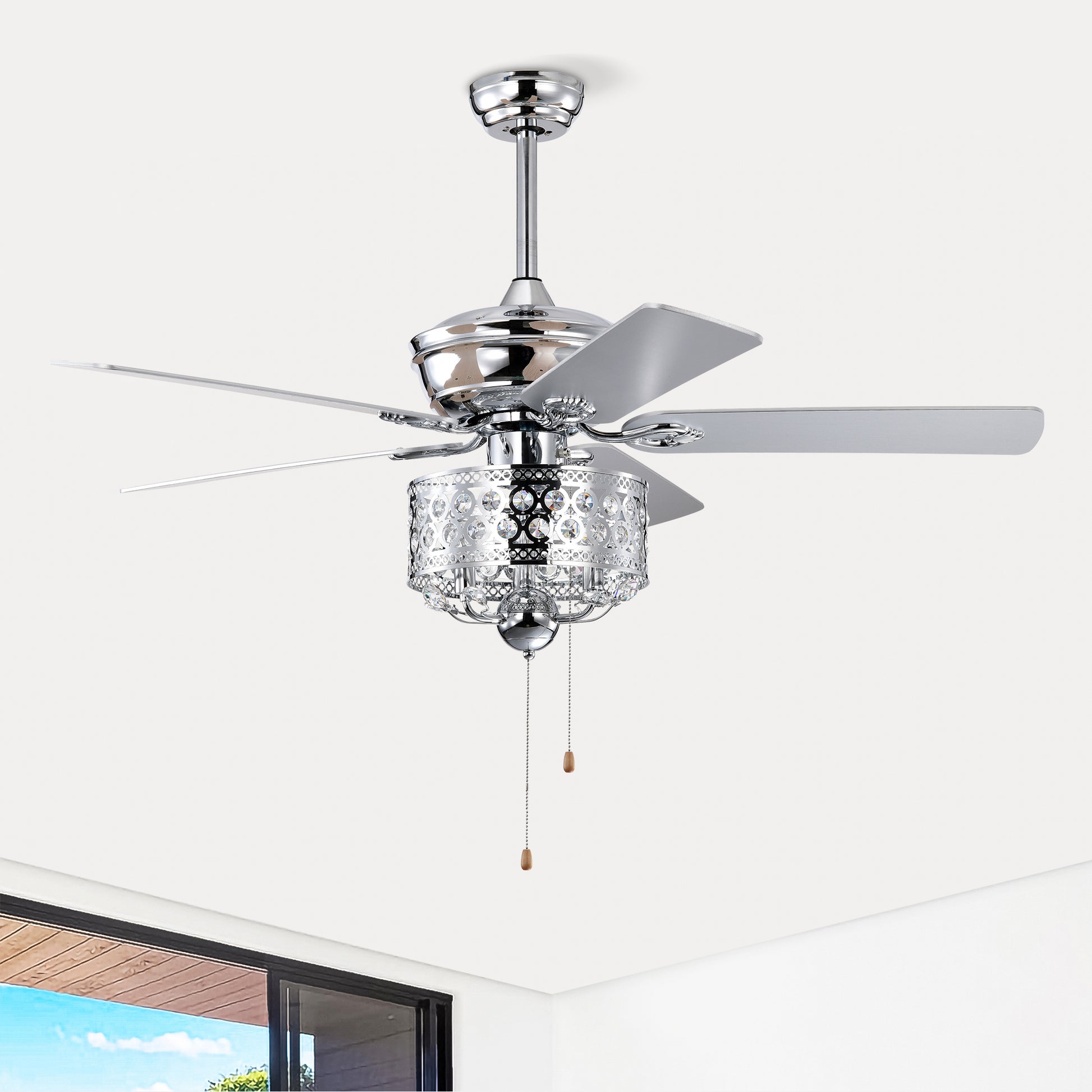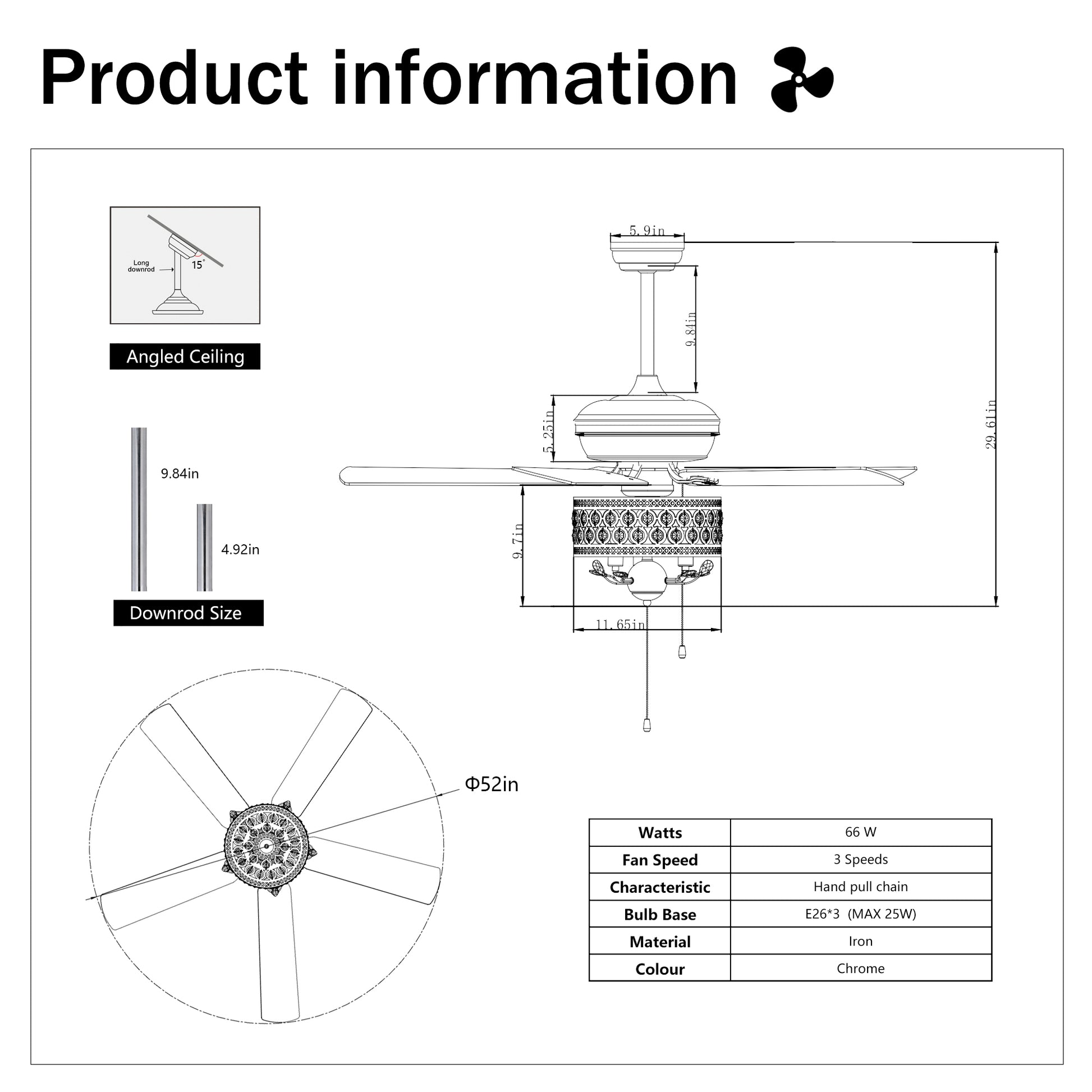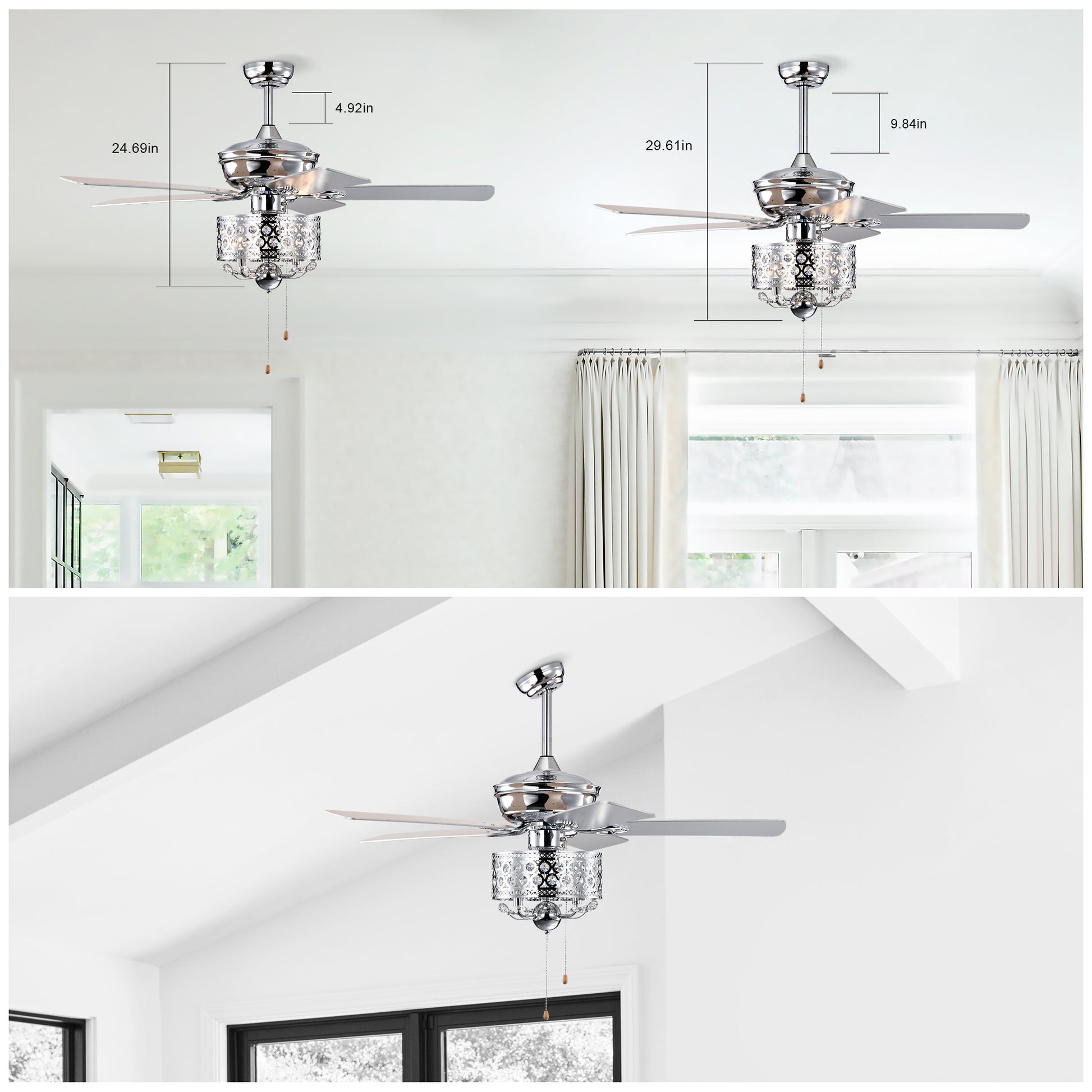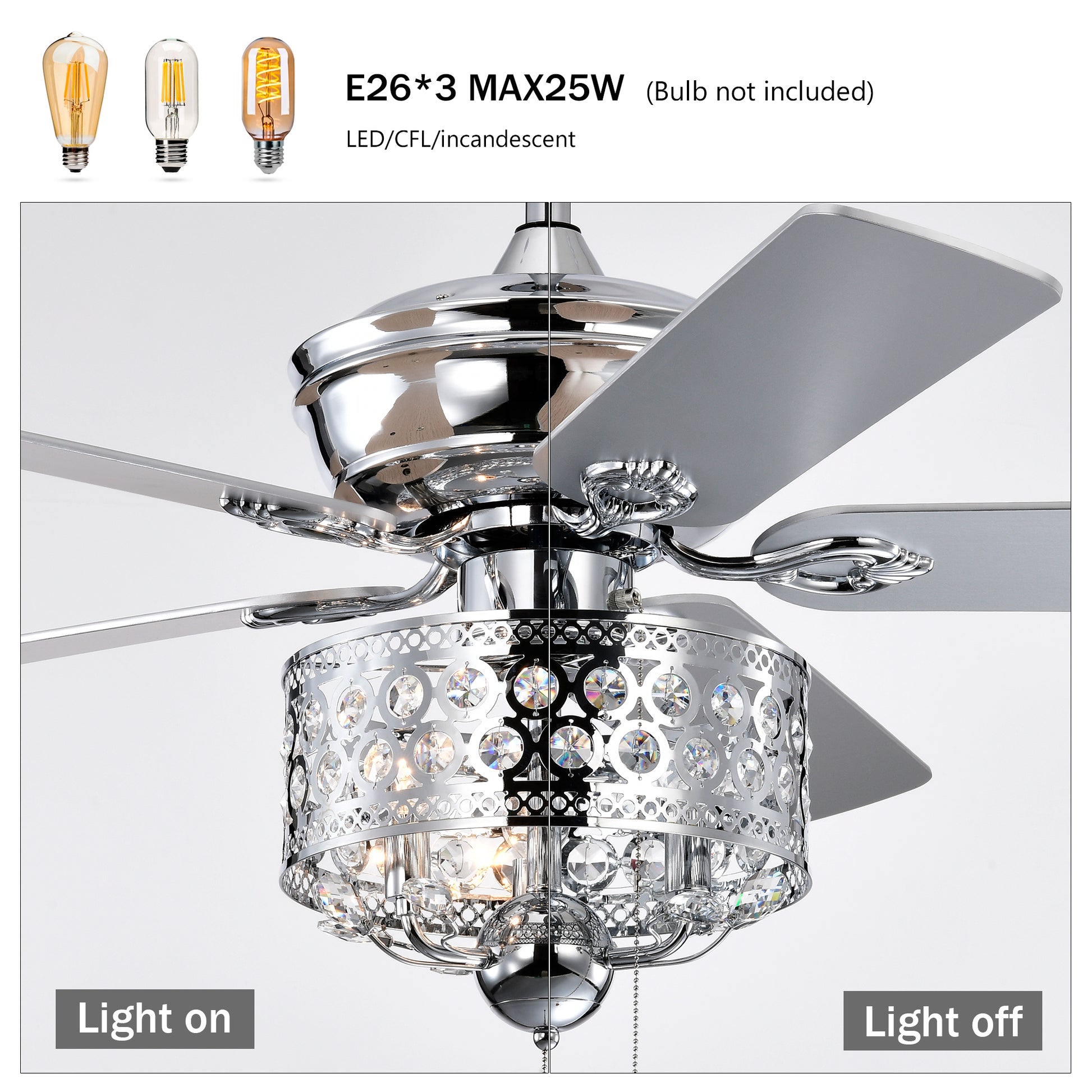 Chrome 52" Ceiling Fan with Reversible Motor - Indoor Use, Pull Chain Control (No Light Bulb)