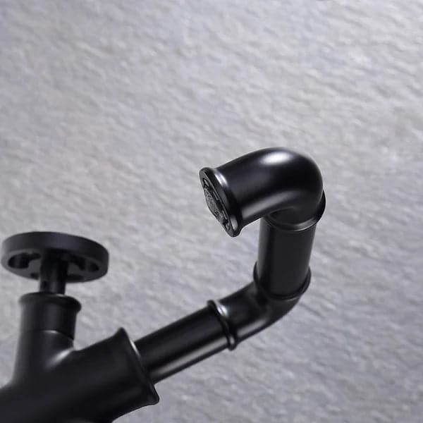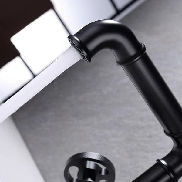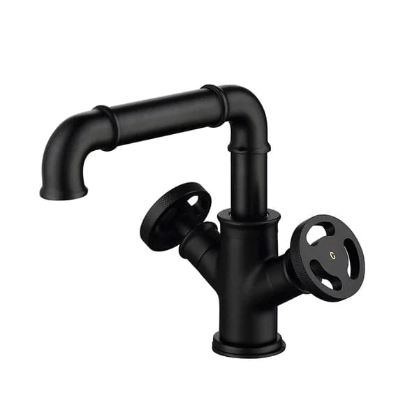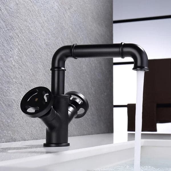 Robinet de lavabo de salle de bains à 1 trou, tuyau industriel, noir mat, double poignées, laiton massif