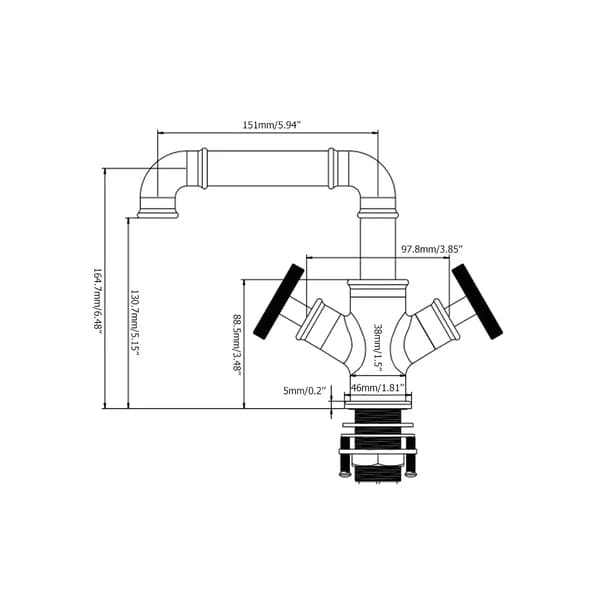 Dotée d'un design inspiré des tuyaux de vapeur industriels, cette collection de robinets Ruth a un style distinct qui s'intègre bien dans le décor urbain et moderne de la maison. De la collection Ruth, ce robinet de salle de bain à 2 poignées à tuyau noir s'intègre bien dans la salle de bain de style urbain et moderne. Il présente une construction en laiton durable et une finition de haute qualité pour une utilisation durable. Les deux poignées rondes permettent de contrôler facilement la température et le débit. Associez-le à n'importe quel robinet de la collection Ruth pour un look coordonné.