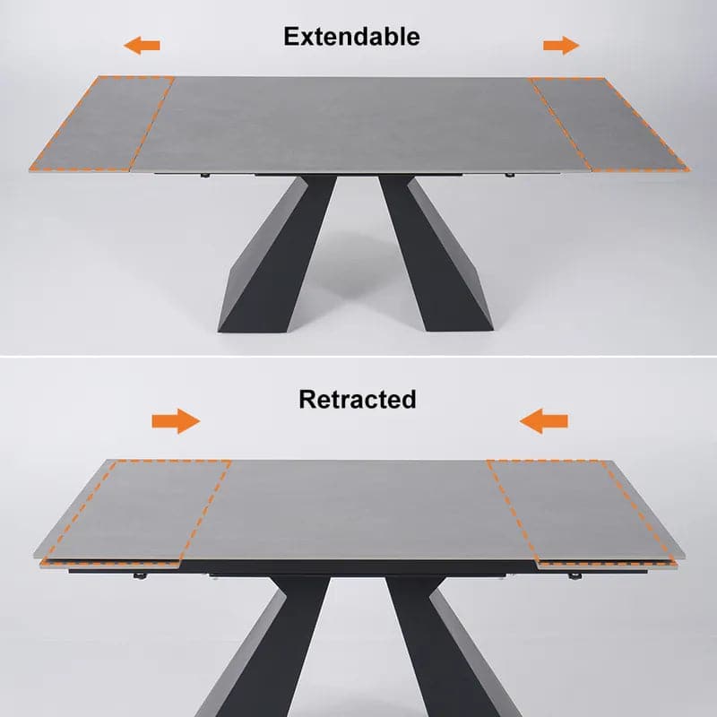 Il s'agit d'une table rectangulaire classique à usage formel, élégante et pas trop compliquée à assembler. Un cadre en acier au carbone noir en fait une table à manger robuste. Lorsque les rallonges de la table sont complètement déployées, elle devient une grande table à manger pouvant accueillir jusqu'à 8 personnes. Des innovations de conception puissantes telles que la pierre frittée et l'acier au carbone donnent à la zone une apparence encore plus haut de gamme.