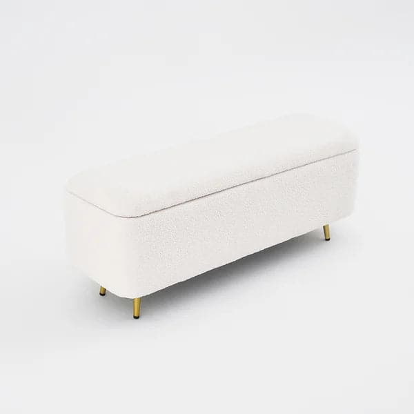 Pouf rembourré avec banc blanc Boucle de chambre à coucher moderne avec rangement et pieds dorés