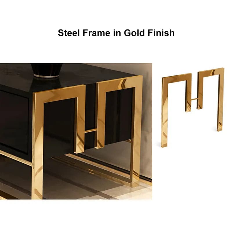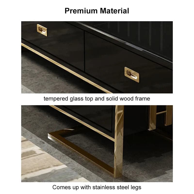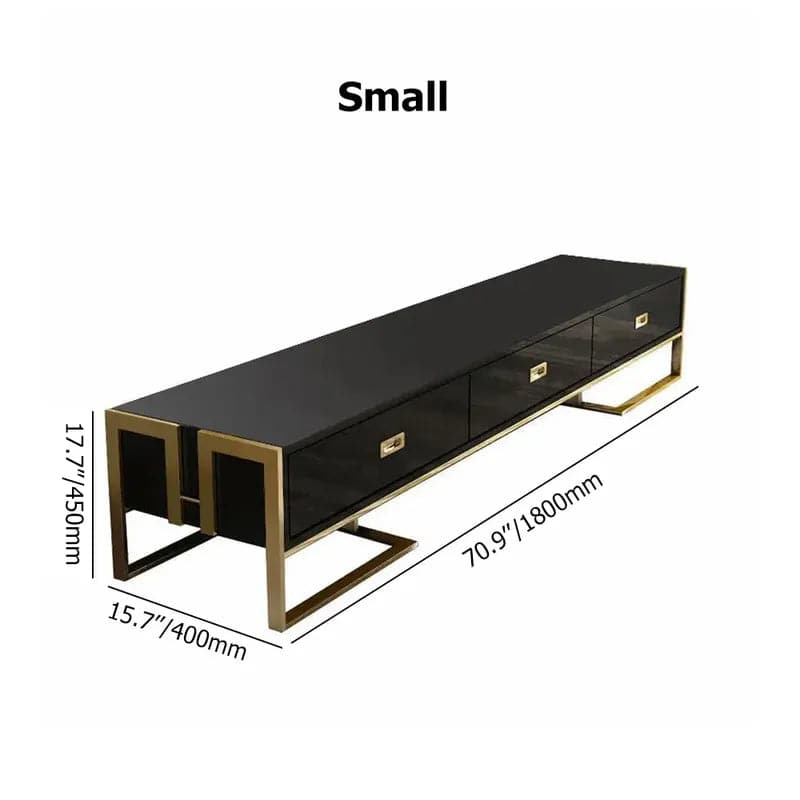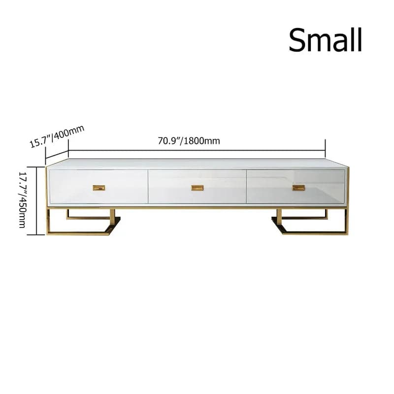 Dotée de lignes épurées et d'une base en acier inoxydable doré scintillant, la collection Jocise apporte une touche moderne et élégante à n'importe quel espace. Grâce à son profil élégant et intemporel, ce meuble TV apportera un style agréable au premier plan de votre espace. Avec un dessus spacieux, il peut parfaitement contenir votre télévision et vos jeux multimédias, ainsi qu'une gamme d'œuvres d'art. Doté de trois tiroirs spacieux, il est idéal pour ranger des DVD, des télécommandes, des livres et d'autres objets. Donnez à votre maison un charme moderne avec ce meuble télé chic !