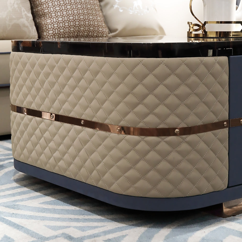 This marble coffee table can go with an array of styles and bring modern-inspired aesthetics to your living room. It's made from solid wood and Stainless Steel, features 2 blue drawers. The blue drawers and storage do not only make it a wonderful decoration in your house, but also provide the perfect space to set out snacks, magazines, and more as you relax and unwind.