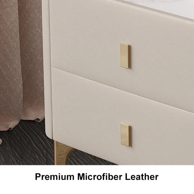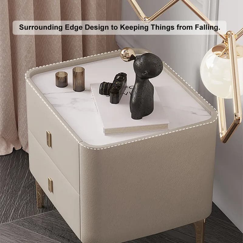 Table de chevet moderne blanc cassé à 2 tiroirs avec plateau en pierre frittée