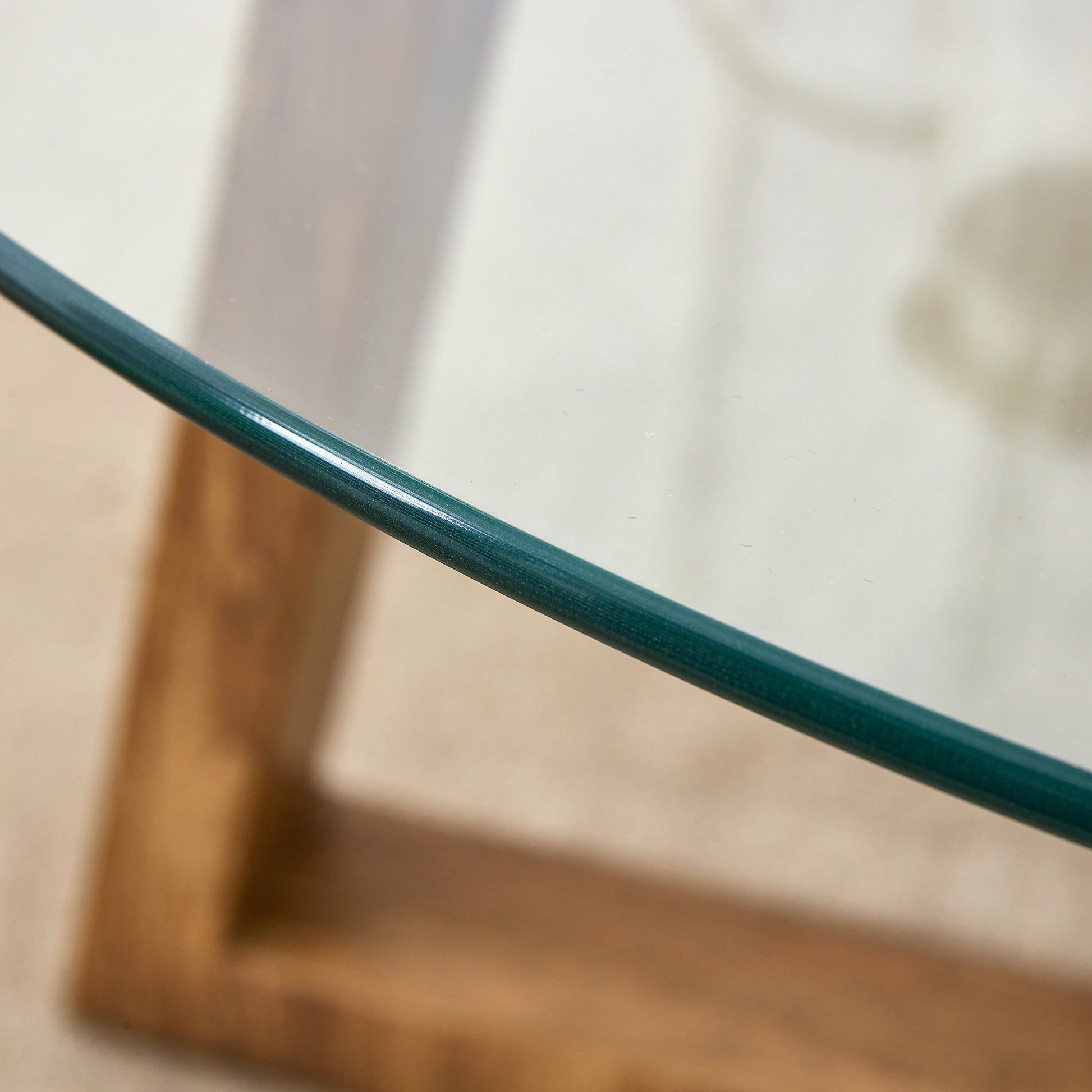 Modern practical circular coffee and tea tables. Made of transparent tempered glass tabletop and wood colored MDF material. Suitable for living rooms and bedrooms.31.5"*31.5"*17.7"
