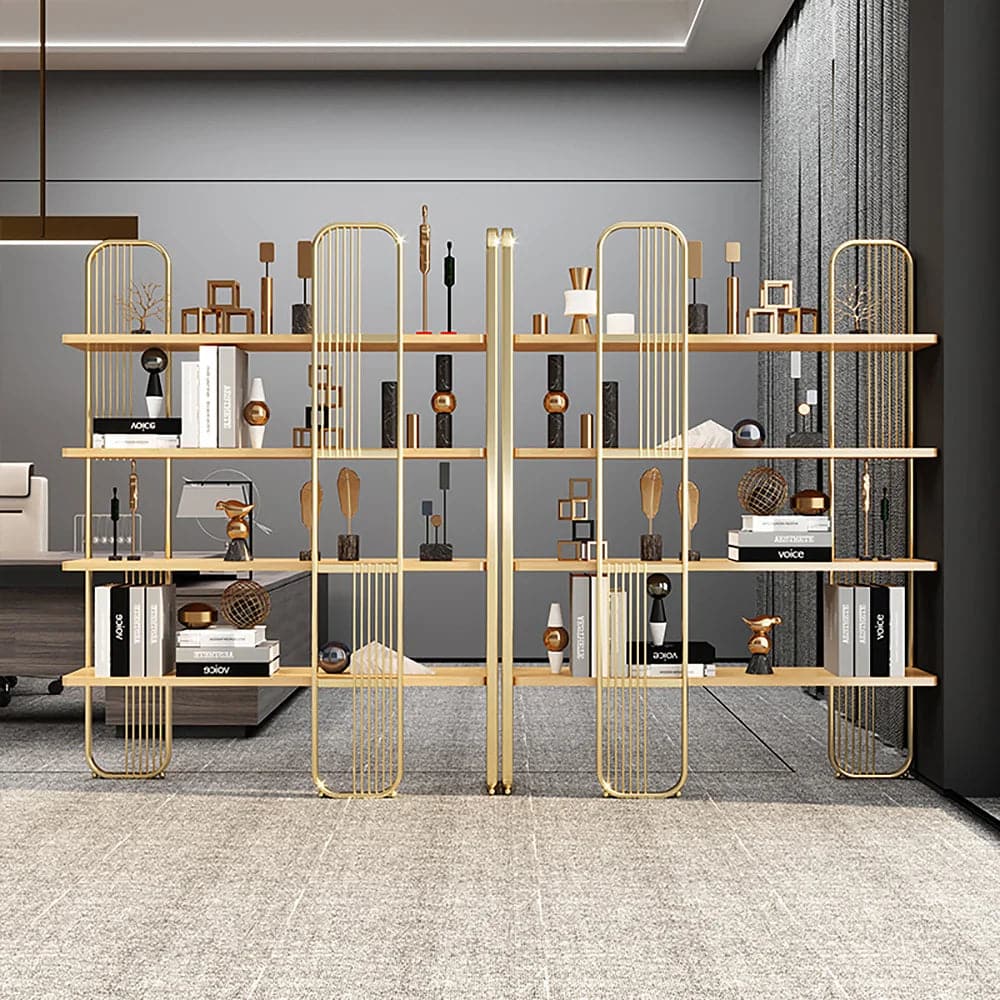 Bibliothèque étagère de rangement moderne à 4 niveaux en or