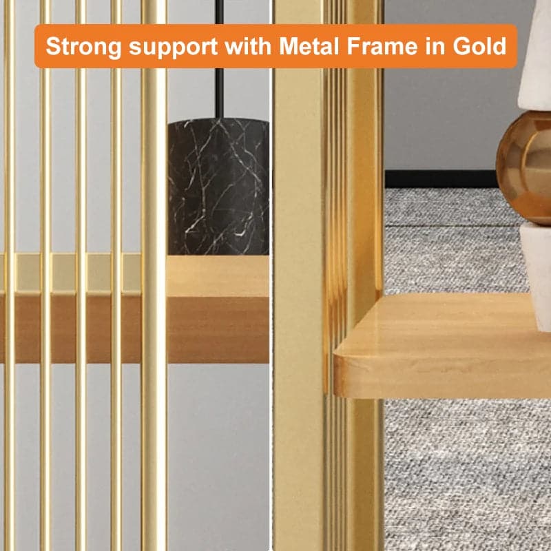- Il possède une structure en métal doré contenant quatre étagères en bois dur, ce qui le rend assez spacieux, tandis que les anneaux circulaires sur le corps lui donnent une touche supplémentaire.