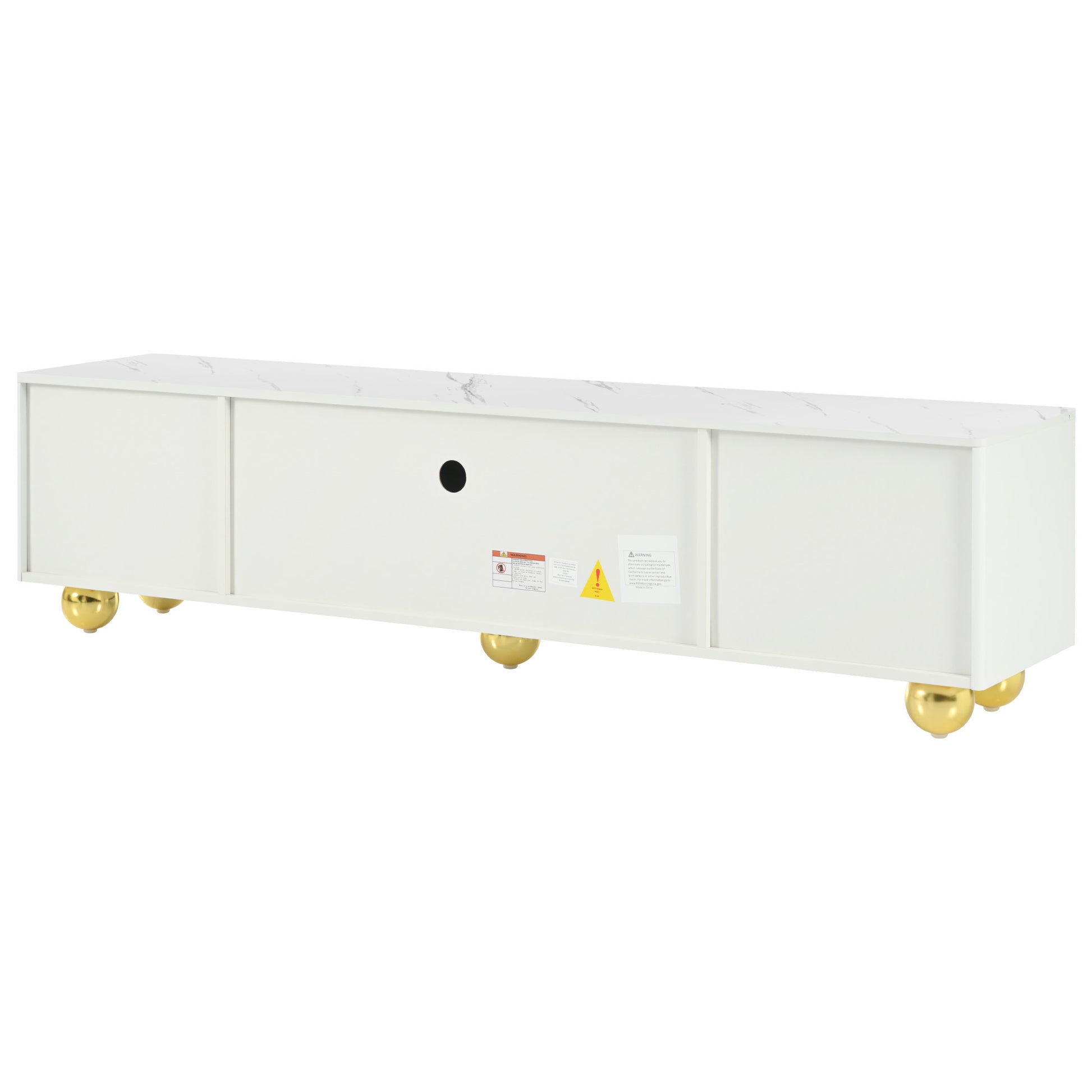 Modern TV Stand for TVs up to 75 Inches, Entertainment Center with Storage Cabinets and 1 Adjustable Shelf, Media Console with Marble-patterned Top and Golden Round Metal Legs for Living room