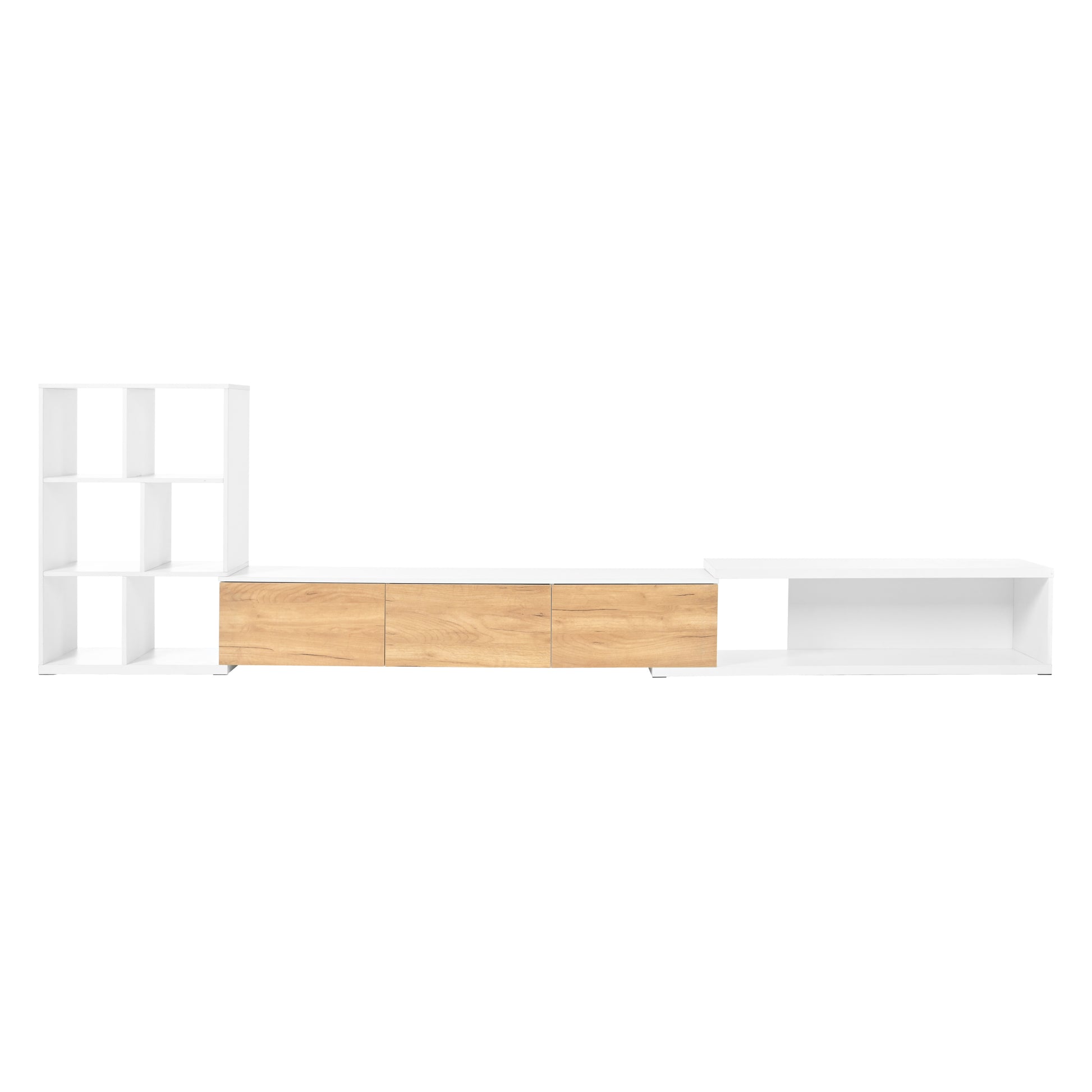 The media console also provides additional storage cabinets and open shelves. Which can be used to store everyday items, media equipment, game consoles, etc., while 3-tier shelves can also be used to display books, decorations, or artwork, providing more private space.