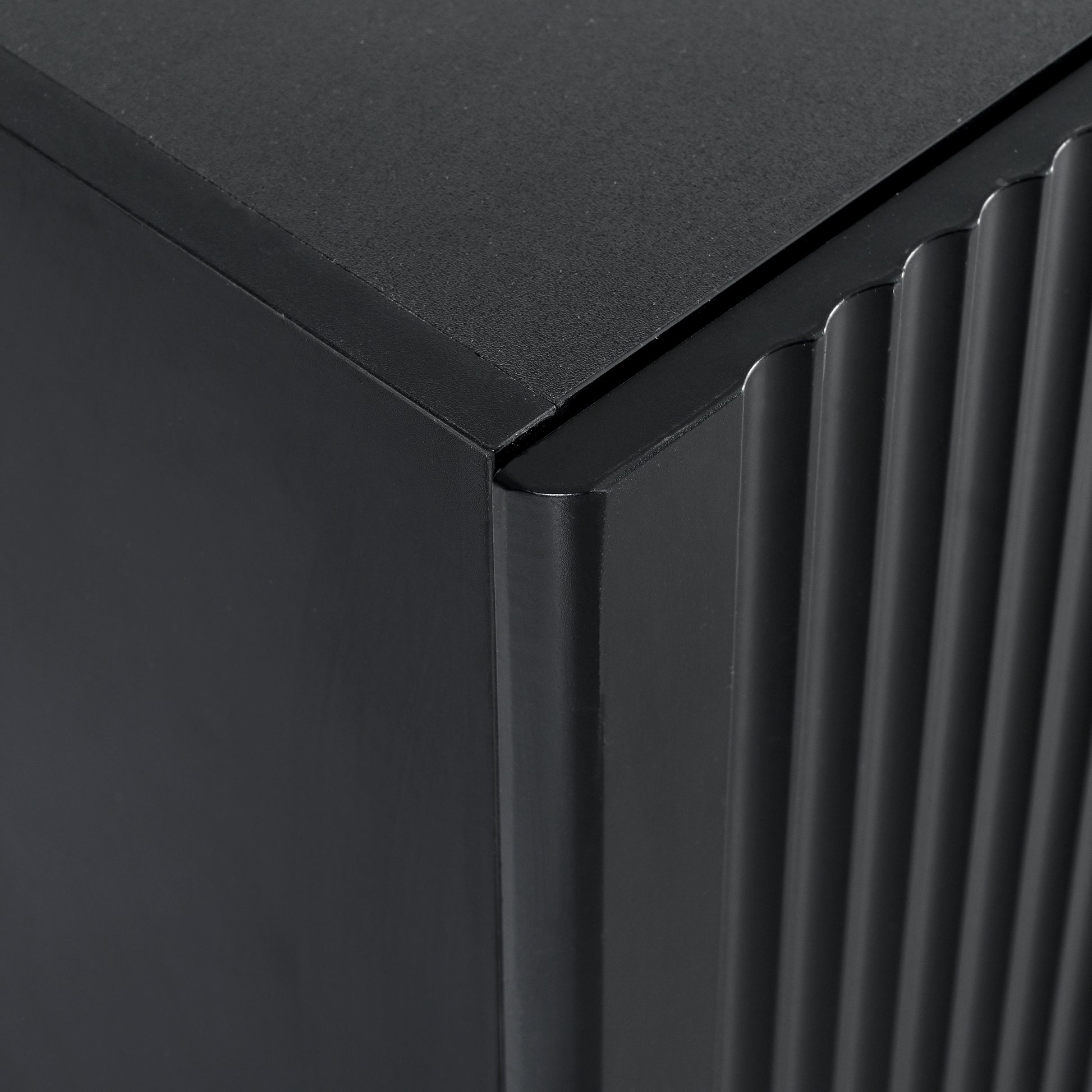 The fluted panels are meticulously crafted with blister molding techniques, which is renowned for its exceptional quality. The cabinet is skillfully constructed from MDF (Medium Density Fiberboard) and particleboard, showing a refined texture while ensuring superior durability and water resistance.