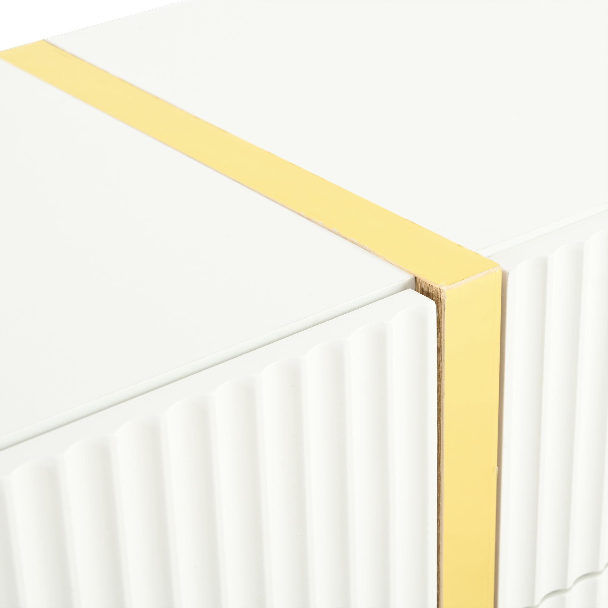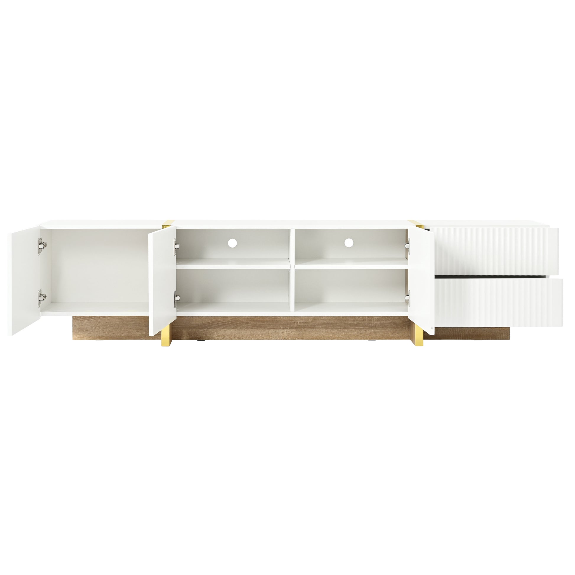 ON-TREND Luxury Fluted TV Stand for TVs Up to 80'', Modern Entertainment Center with Storage Cabinets & Drawers, Smooth Media Console with Golden Wood Grain Legs for Living Room, White