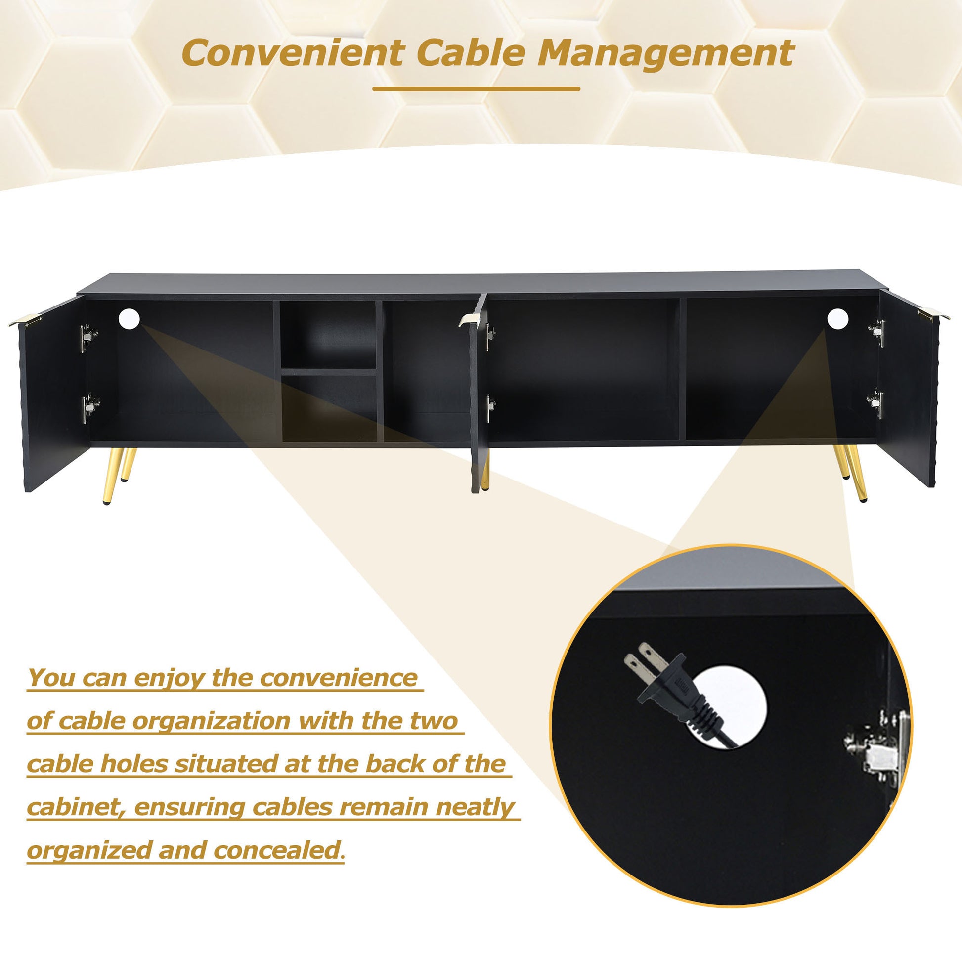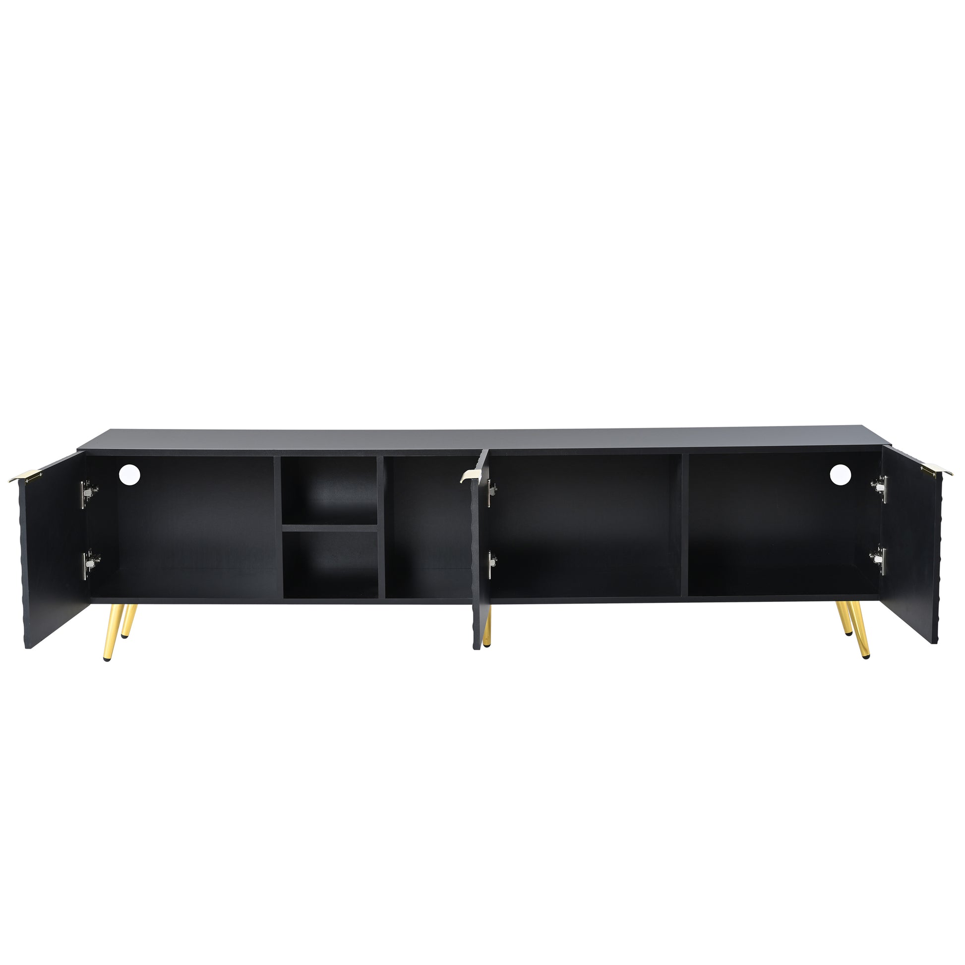 ON-TREND Modern Minimalist Geometric TV Cabinet with Metal Handles and Gold Legs for TVs Up to 80'', Multi-functional TV Stand with Storage Cabinets, Entertainment Center for Living Room, Black