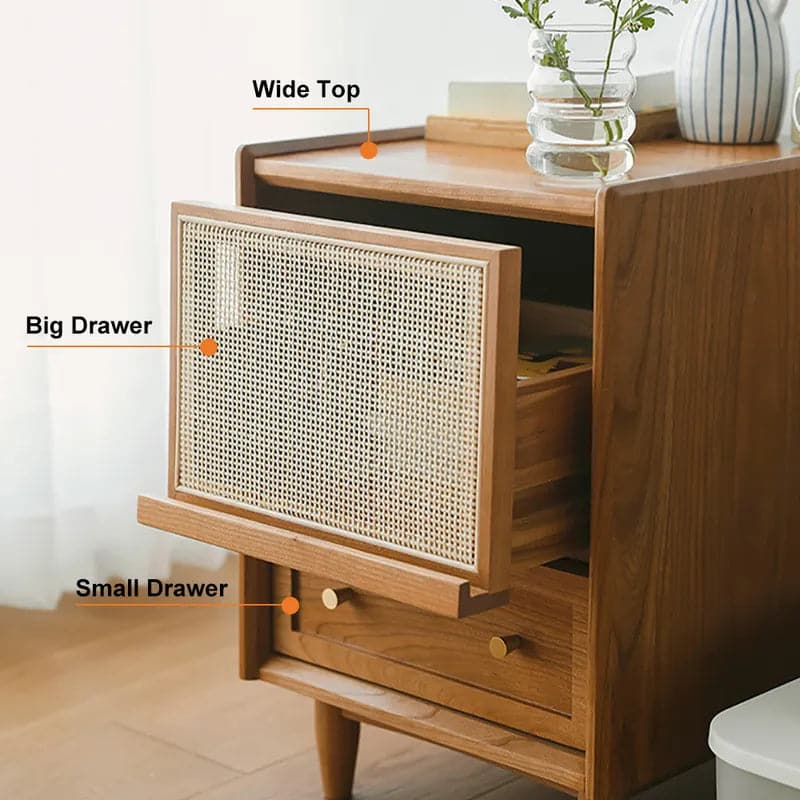 Table de chevet rustique en rotin avec rangement, table de chevet en bois massif en noyer
