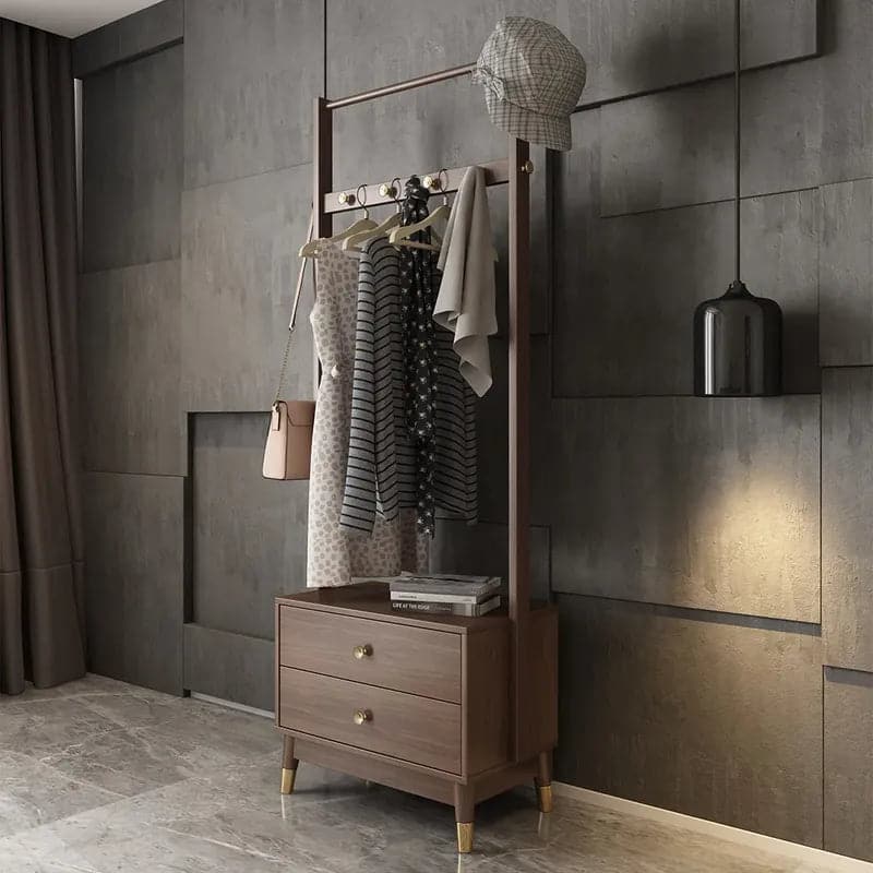 Portant à vêtements classique en noyer Ultic avec tiroirs à structure en bois inclus