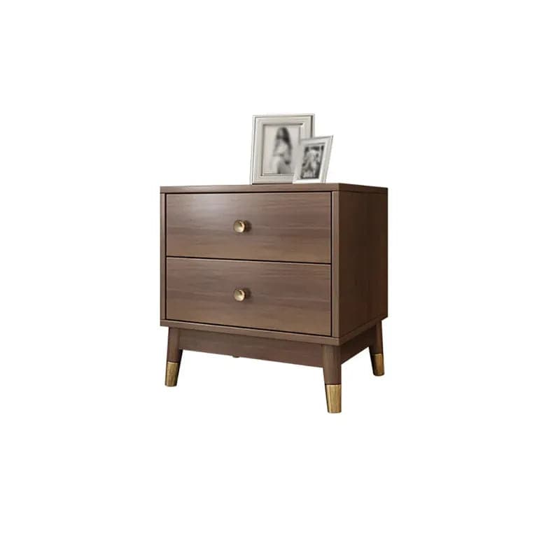 Placez les photos avec vos proches sur cette table de chevet, évoquant les plaisirs simples du temps que vous avez passé ensemble d'un simple coup d'œil. Soutenue par 4 pieds de forme effilée, la table de nuit bénéficie de lignes simples tout en étant ornée de boutons ronds. Les 2 tiroirs offrent suffisamment de rangement pour vos essentiels avant de vous coucher. L'ensemble de la table de nuit est dans une teinte noyer tandis qu'elle est ornée d'or, elle crée un attrait mature et vieilli. Vous pouvez également le placer dans le salon ou la chambre comme commode d’appoint.