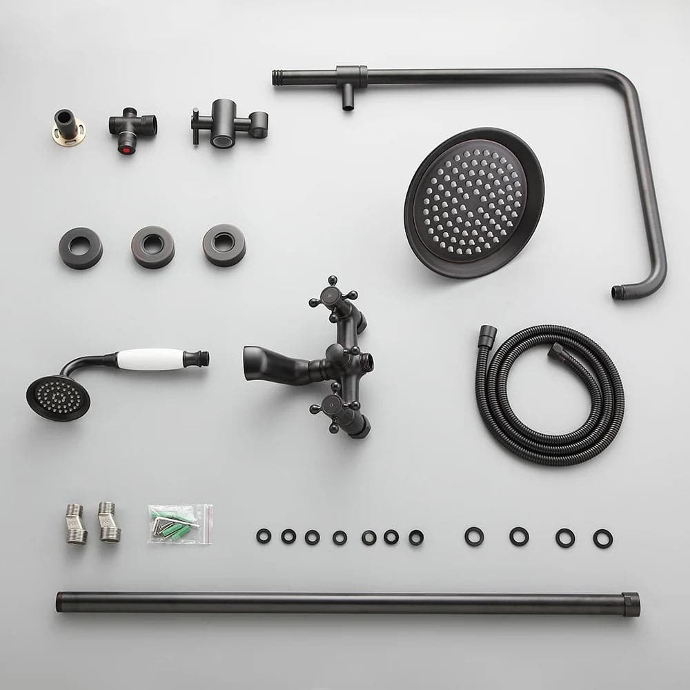 Système de douche à main pour salle de bain Vintage, système de douche à effet de pluie exposé, noir Antique