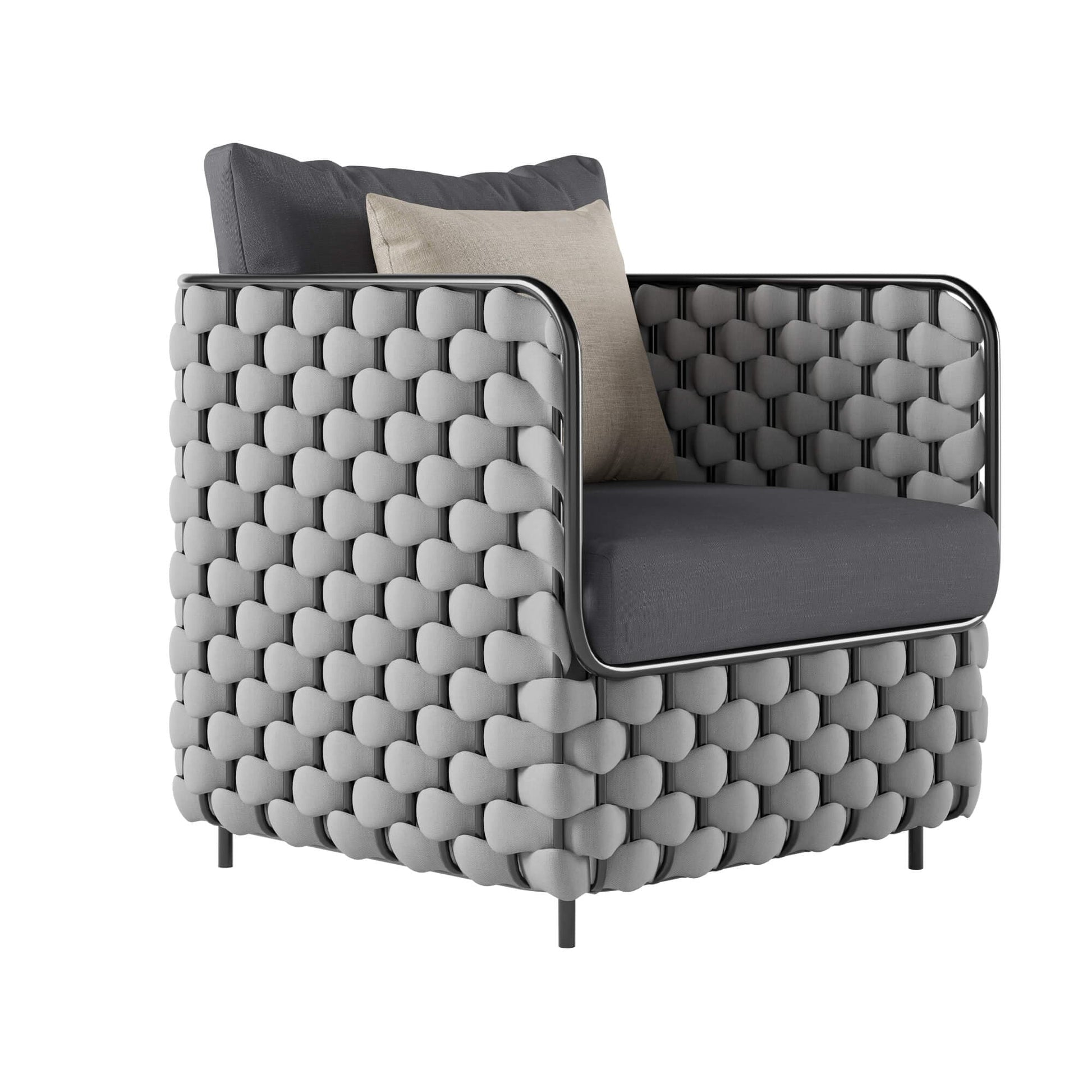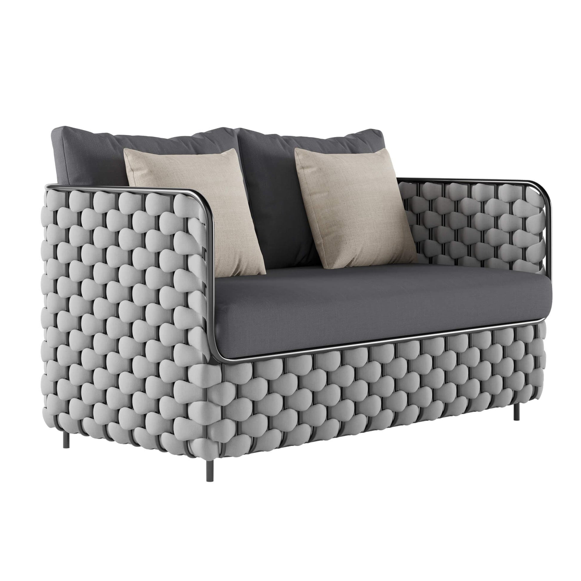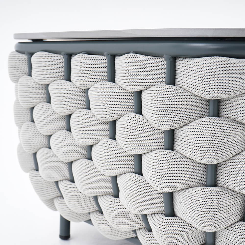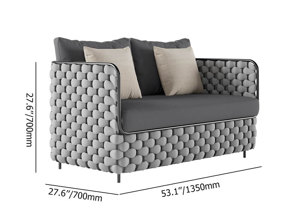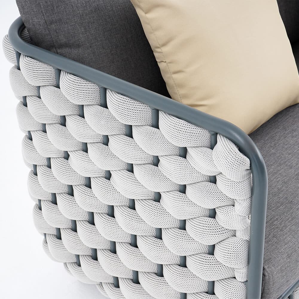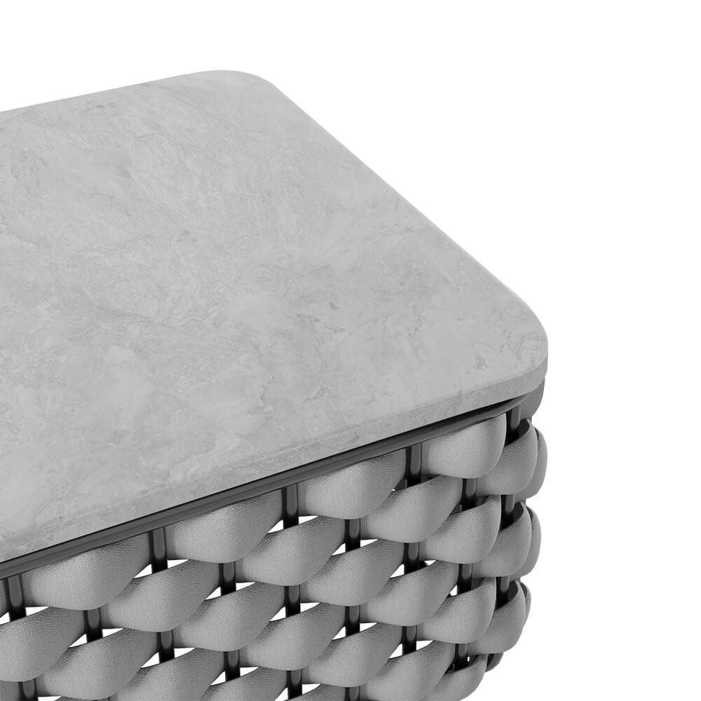 4Pcs Aluminum & Rope Outdoor Sofa Set with Faux Marble Coffee Table and Cushion Pillow