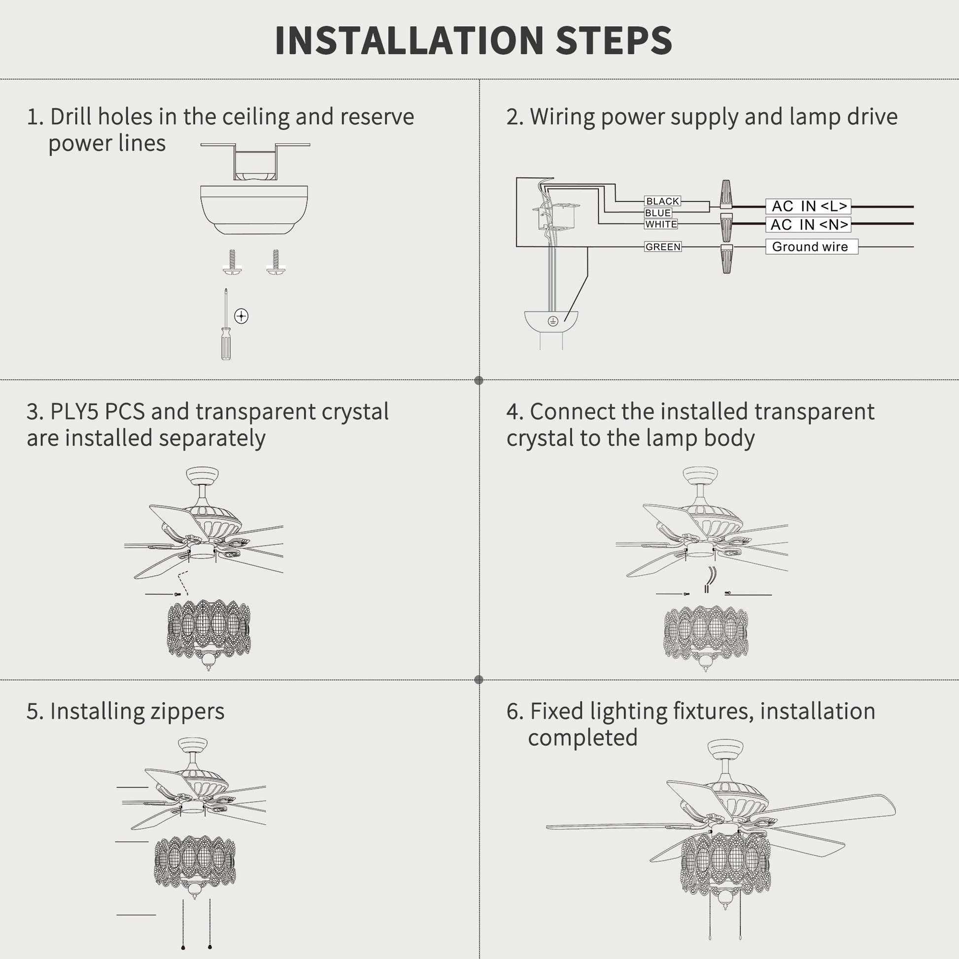 • 【 MODERN DESIGN 】: Elevate your room with this new fan! Modern ceiling fan and crystal chandelier 2 in 1.