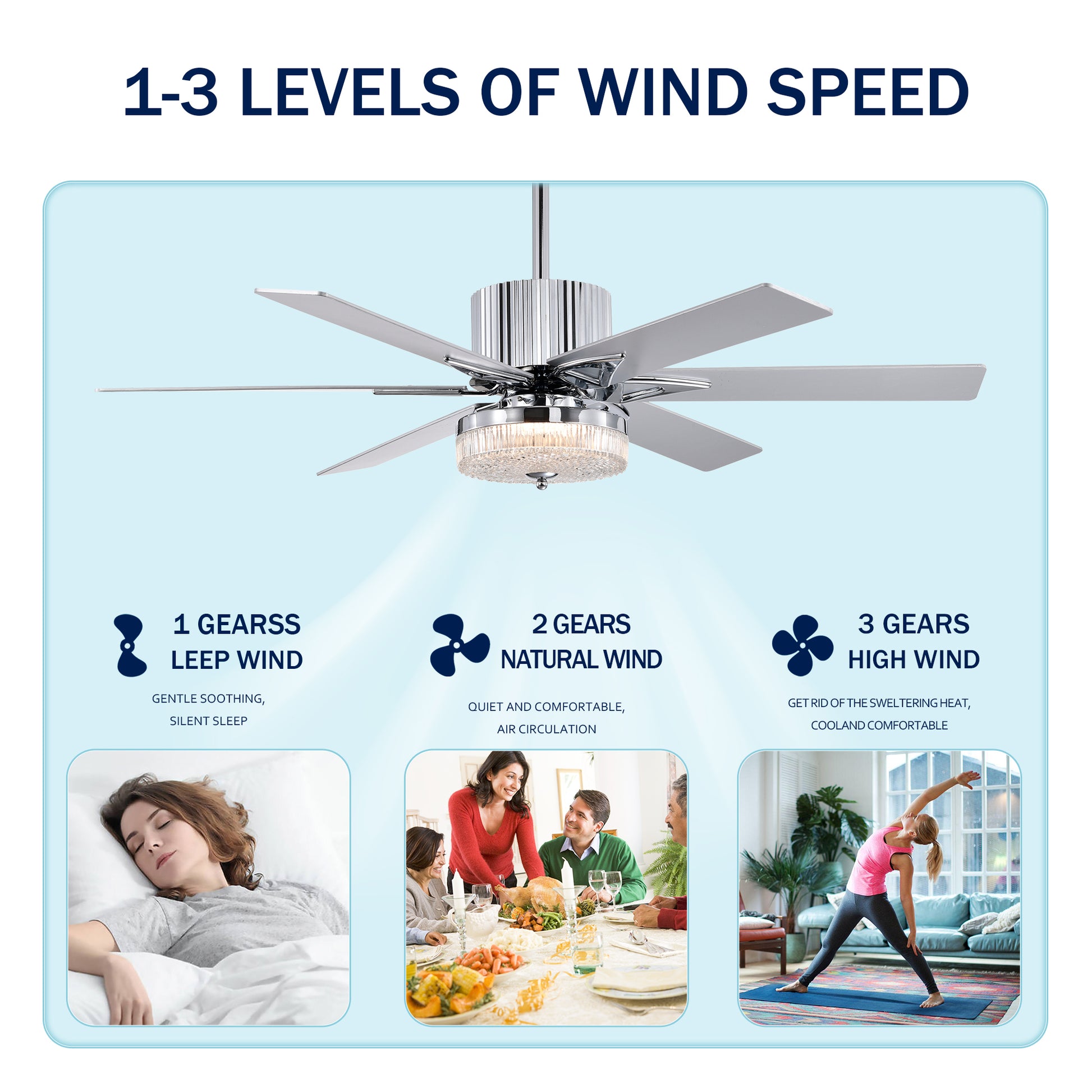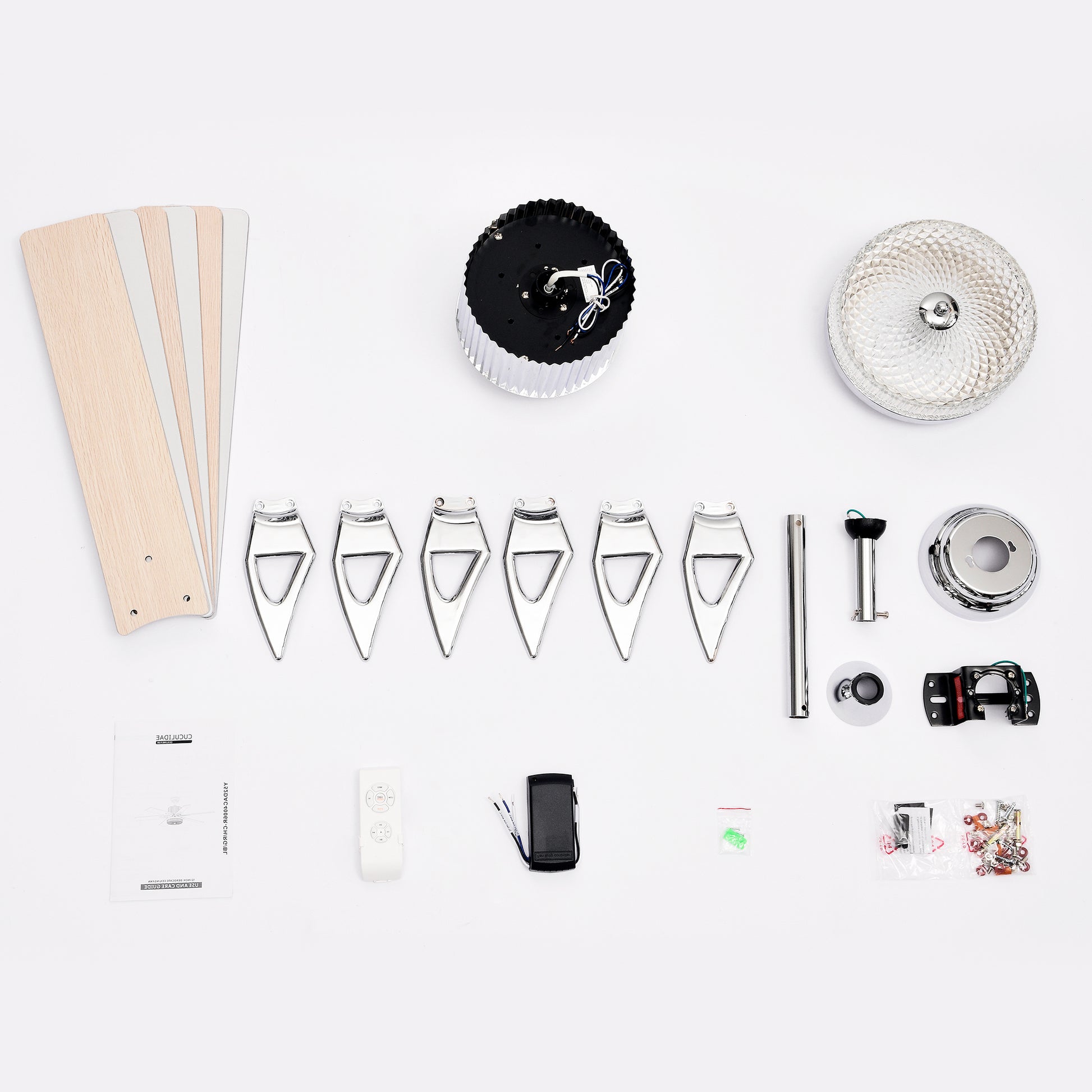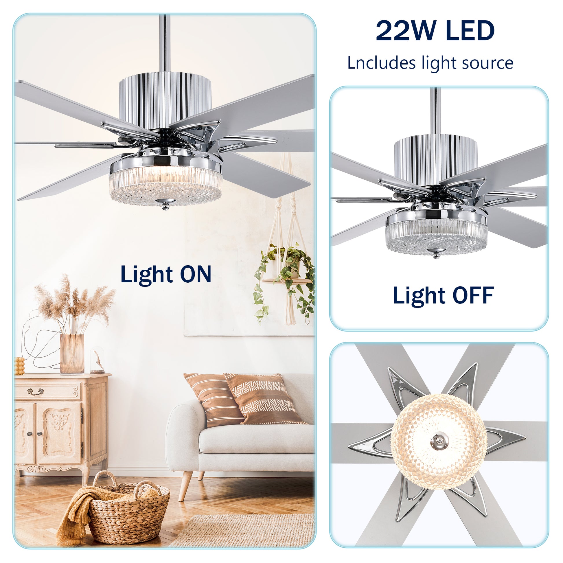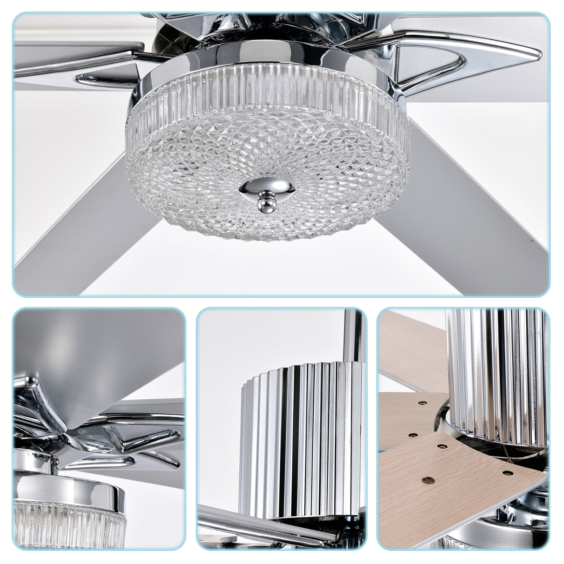 52" Modern Ceiling Fan with Remote - Chrome Finish, Wood Blades, LED Light for Living Room